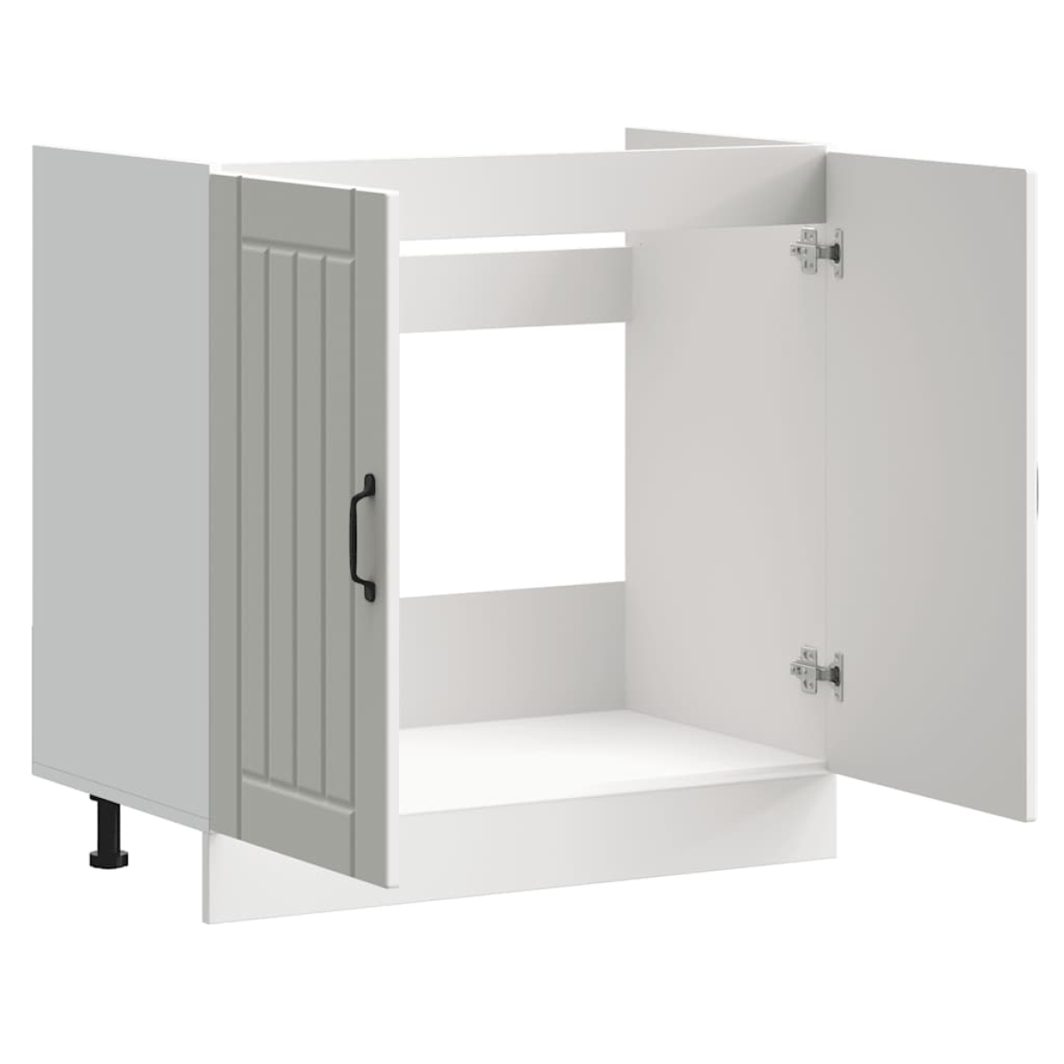 This sink base cabinet optimises your kitchen space, providing ample storage space for your personal belongings! Stable and durable material: Engineered wood is a durable and stable material with a smooth surface that is resistant to moisture, warping, and splitting, making it a reliable choice for a variety of projects.Ample storage space: The kitchen base cabinet offers sufficient space to store bowls, plates, pots, and other kitchen appliances.Practical doors: The door helps maintain a clean and organised space by concealing kitchen appliances and clutter behind them.Adjustable feet: The feet of this kitchen sink base cabinet can be adjusted in height to suit your kitchen layout.Easy to maintain: Thanks to its smooth surface, this kitchen sink base unit is easy to clean with a damp cloth and requires less maintenance. Warning:To prevent it from tipping over, this product must be used with the provided wall attachment device. Good to know:Screw(s) and plug(s) for inside the wall are not included. Seek and use screw(s) and plug(s) suitable for your walls. If you are uncertain, seek professional advice. Read and follow each step of the instruction carefully.