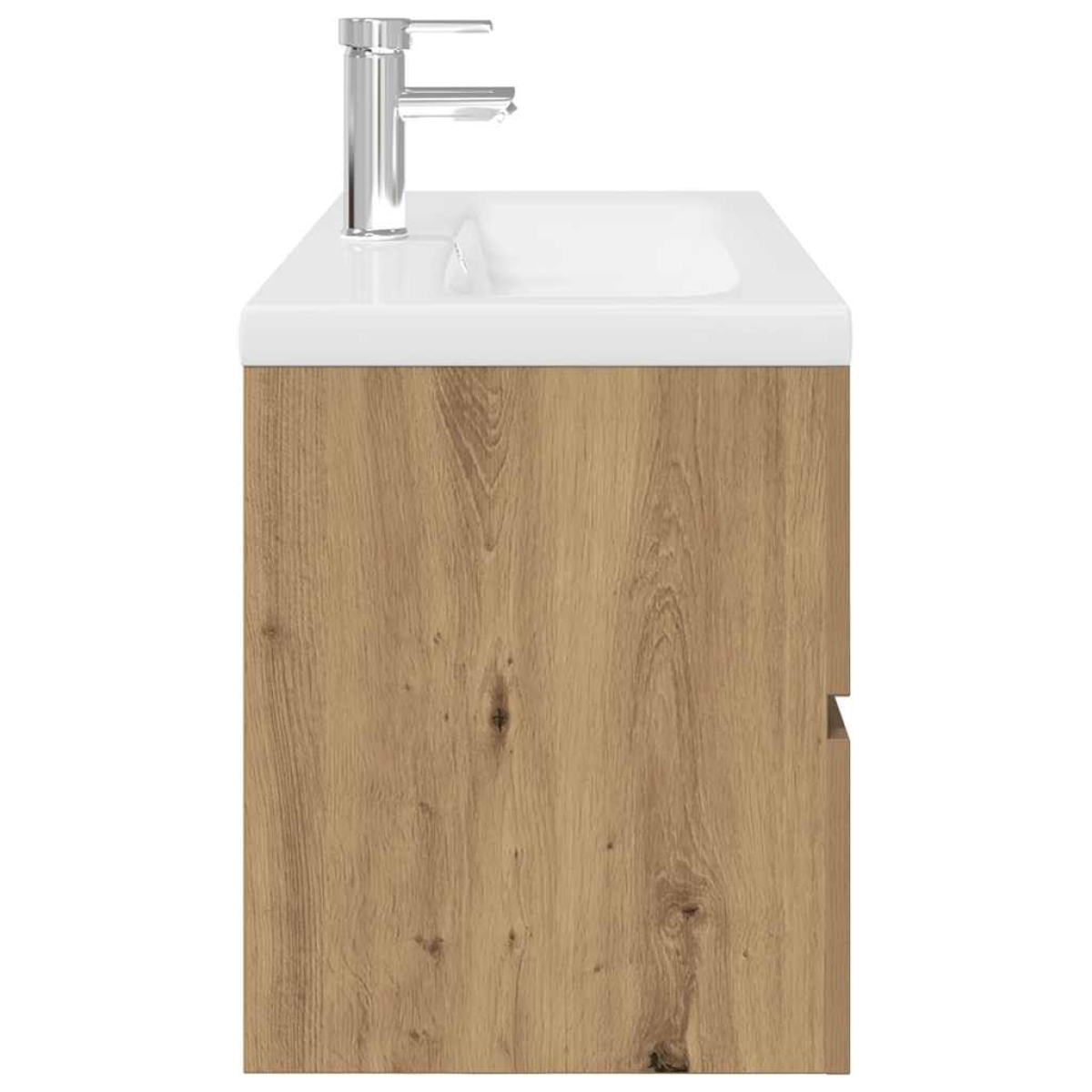 This stylish sink cabinet with a built-in basin and faucet, featuring spacious storage space, is an excellent addition to your bathroom, giving it a tidy and striking appearance! Sturdy material: The under sink cabinet is made of, that is of exceptional quality with smooth surface and also features strength, stability and resistance to moisture.Ample storage: The bathroom sink unit features a drawer, offering ample storage space to store items in your bathroom.Practical design: The top of this bathroom cabinet is ideal for placing the sink.Wall-mounted function: The bathroom cabinet can be wall-mounted to add extra storage space. That way, you can maximise your floor space and keep the area clean.Overflow function: An overflow is also equipped to flow water out when it gets too full. Good to know:Screw(s) and plug(s) for inside the wall are not included. Seek and use screw(s) and plug(s) suitable for your walls. If you are uncertain, seek professional advice. Read and follow each step of the instruction carefully.The faucet and push drainer with overflow function are included.The tap is a hot and cold tap, and if you have a need for hot water, a water heater must be connected.