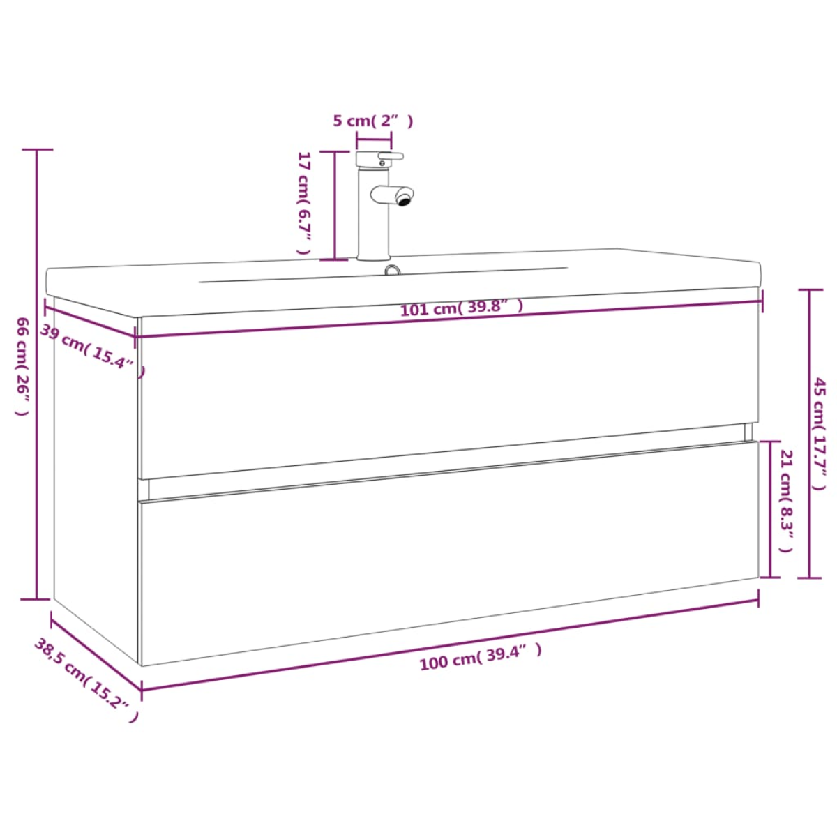 This stylish sink cabinet with a built-in basin, featuring spacious storage space, is an excellent addition to your bathroom, giving it a tidy and striking appearance! Sturdy material: The under sink cabinet is made of engineered wood, that is of exceptional quality with smooth surface and also features strength, stability and resistance to moisture.Ample storage: The bathroom sink unit features a drawer, offering ample storage space to store items in your bathroom.Practical design: The top of this bathroom cabinet is ideal for placing the sink.Wall-mounted function: The bathroom cabinet can be wall-mounted to add extra storage space. That way, you can maximise your floor space and keep the area clean.Overflow function: An overflow is also equipped to flow water out when it gets too full. Note:Screw(s) and plug(s) for inside the wall are not included. Seek and use screw(s) and plug(s) suitable for your walls. If you are uncertain, seek professional advice. Read and follow each step of the instruction carefully.The faucet and push drainer with overflow function are included.Each product comes with an assembly manual in the box for easy assembly.The tap is a hot and cold tap, and if you have a need for hot water, a water heater must be connected.