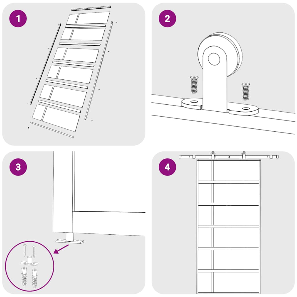 This sliding door creates a graceful transition from one room to another. It provides the perfect solution for saving space. Stable material: The aluminium frame and ESG panels add extra stability. Good privacy: Frosted design protects your privacy while allowing natural light to your room. Safe and quite: Thanks to the door's soft stop to stop the door, it can be opened and closed quietly when you open and close by triggering a buffer. Note:Hanging wheels and top sliding rails are not included in the delivery.The door can only be mounted in combination with sliding door hardware kits. You can find the matching sliding door hardware kits in our shop (SKU: 145262, 145263), which need to be purchased separately. For the installation way, you can check our installation manual of the door and sliding hardware kits.