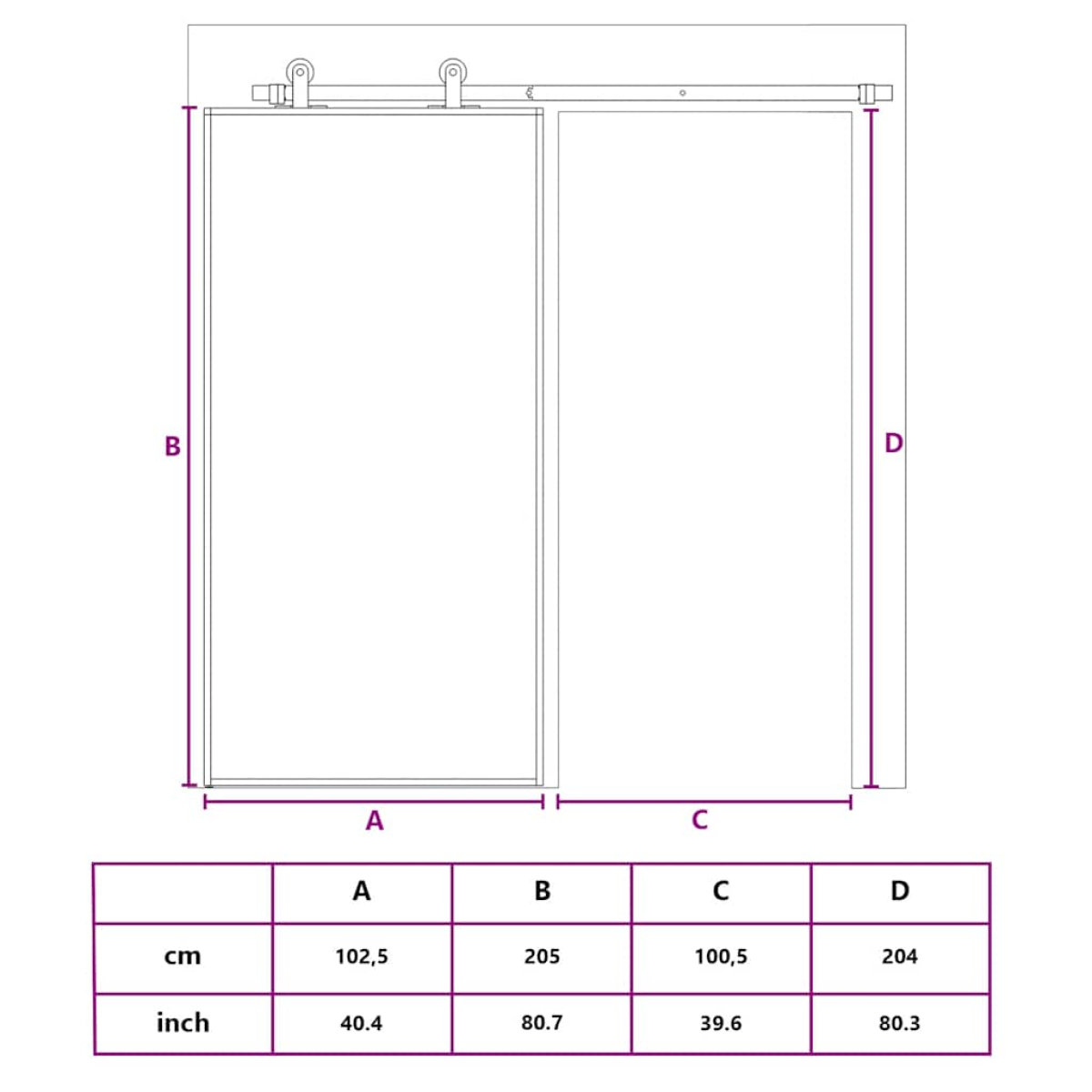 - Door dimensions: 102.5 x 205 cm (W x H)