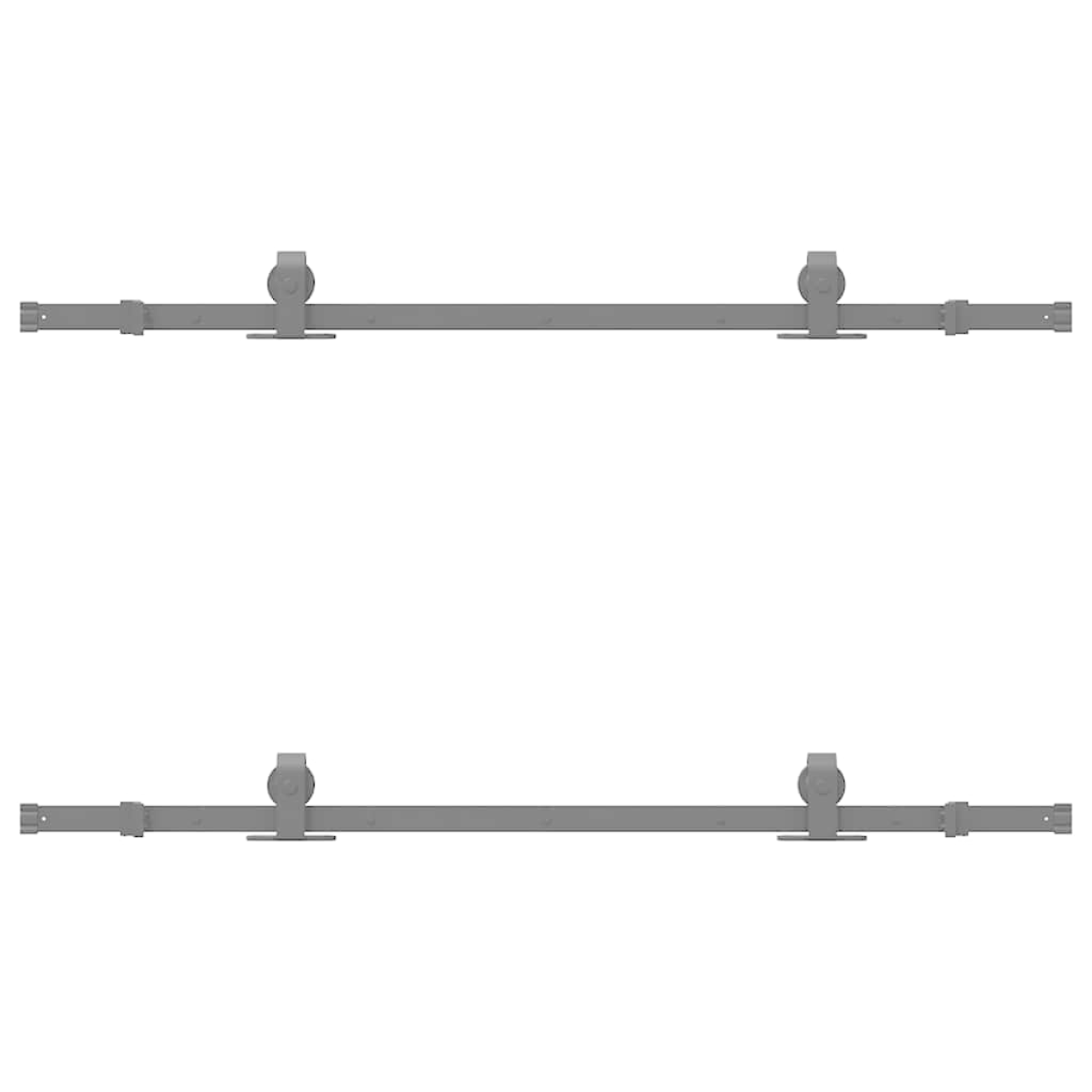 With this sliding door hardware kit, you can easily set up dual tracks for a pair of doors to slide in front of and behind each other. Safe and reliable: Thanks to the internal bearings, your doors can slide smoothly and quietly. Door stops are also included to prevent the derailing of the rollers, while the rubber gaskets will buffer the bump from rollers and reduce the noise.Heavy-duty material: Powder-coated steel is strong, stable, durable, and corrosion-resistant, ensuring long-lasting performance.Ideal for double barn doors: When wall space is limited, the barn door bypass bracket kit allows two barn doors to slide independently on two tracks without the need for additional clearance.Easy installation: This sliding door hardware set can be easily installed on the barn door with the included mounting accessories, making the installation a breeze.Wide application: This barn door bracket kit allows for one door to slide over another, making it perfect for closets, pantries, or possibly even multiple openings on the same wall. Good to know:The delivery includes sliding door hardware kit only. The door is not included in the delivery.