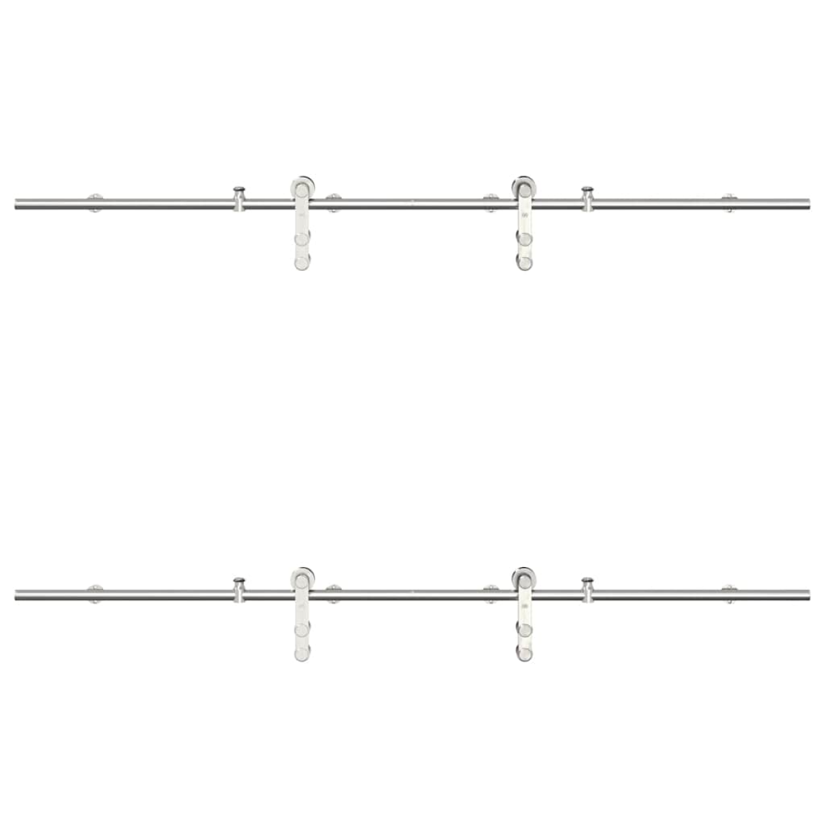 With this sliding door hardware kit, you can easily set up dual tracks for a pair of doors to slide in front of and behind each other. Safe and reliable: Thanks to the internal ball bearings, your doors will slide smoothly and quietly. Door stops are also included to prevent the derail of rollers, while the rubber gaskets will buffer the bump from rollers and reduce the noise.Heavy-duty material: Stainless steel boasts strength and exceptional resistance to deformation and rust, ensuring durability and longevity.Ideal for double barn doors: When wall space is limited, the barn door bypass bracket kit allows two barn doors to slide independently on two tracks without the need for additional clearance.Easy installation: The sliding door hardware set can be easily installed on the barn door with the included mounting accessories, making the installation a breeze.Wide application: This barn door bracket kit allows for one door to slide over another, making it perfect for closets, pantries, or possibly even multiple openings on the same wall. Good to know:The delivery includes sliding door hardware kit only. The door is not included in the delivery.