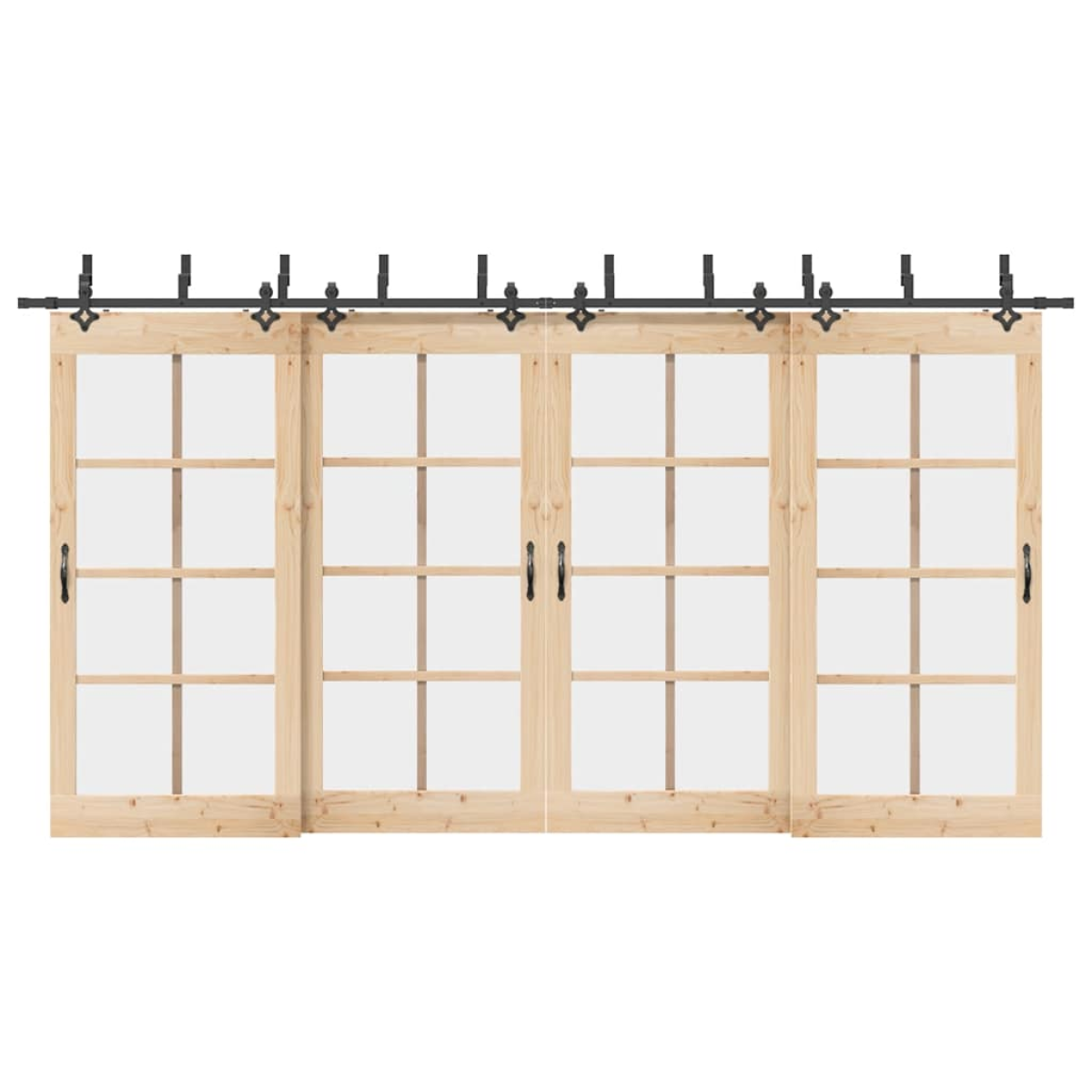 With this sliding door hardware kit, you can easily set up dual tracks for a pair of doors to slide in front of and behind each other. Safe and reliable: Thanks to the internal bearings, your doors can slide smoothly and quietly. Door stops are also included to prevent the derailing of the rollers, while the rubber gaskets will buffer the bump from rollers and reduce the noise.Heavy-duty material: Powder-coated steel is strong, stable, durable, and corrosion-resistant, ensuring long-lasting performance.Ideal for double barn doors: When wall space is limited, the barn door bypass bracket kit allows two barn doors to slide independently on two tracks without the need for additional clearance.Easy installation: This sliding door hardware set can be easily installed on the barn door with the included mounting accessories, making the installation a breeze.Wide application: This barn door bracket kit allows for one door to slide over another, making it perfect for closets, pantries, or possibly even multiple openings on the same wall. Good to know:The delivery includes sliding door hardware kit only. The door is not included in the delivery.