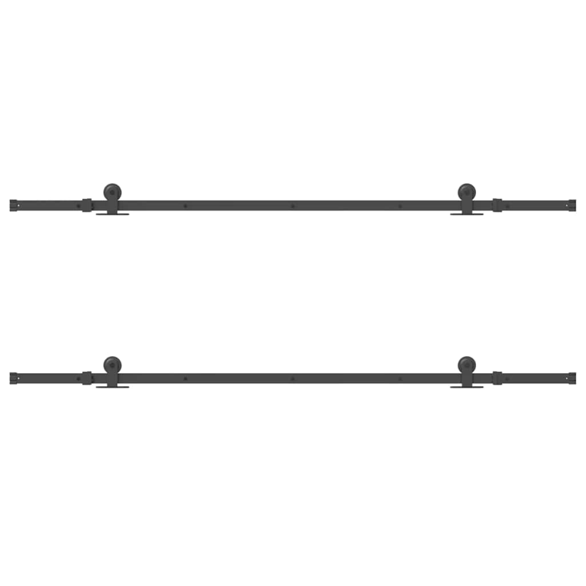 This sliding door hardware kit is ideal for extending the length of your flat sliding door rails! Safe and reliable: Thanks to the internal bearings, your doors can slide smoothly and quietly. Door stops are also included to prevent the derailing of the rollers, while the rubber gaskets will buffer the bump from rollers and reduce the noise.Heavy-duty material: Powder-coated steel is strong, stable, durable, and corrosion-resistant, ensuring long-lasting performance.Ideal for a wider door opening: This barn door track joiner is designed to join two tracks for a wider door opening or double barn door applications.Easy installation: Easily connect two barn door tracks using the included mounting accessories with the barn door rail joiner. Just attach the rail joiner to the ends of the tracks, fasten the screws securely, and you're all set for smooth operation. Good to know:The delivery includes sliding door hardware kit only. The door is not included in the delivery.