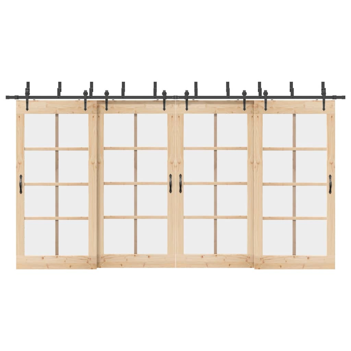 With this sliding door hardware kit, you can easily set up dual tracks for a pair of doors to slide in front of and behind each other. Safe and reliable: Thanks to the internal bearings, your doors can slide smoothly and quietly. Door stops are also included to prevent the derailing of the rollers, while the rubber gaskets will buffer the bump from rollers and reduce the noise.Heavy-duty material: Powder-coated steel is strong, stable, durable, and corrosion-resistant, ensuring long-lasting performance.Ideal for double barn doors: When wall space is limited, the barn door bypass bracket kit allows two barn doors to slide independently on two tracks without the need for additional clearance.Easy installation: This sliding door hardware set can be easily installed on the barn door with the included mounting accessories, making the installation a breeze.Wide application: This barn door bracket kit allows for one door to slide over another, making it perfect for closets, pantries, or possibly even multiple openings on the same wall. Good to know:The delivery includes sliding door hardware kit only. The door is not included in the delivery.