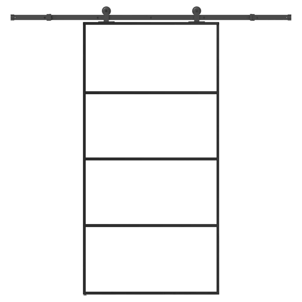 Add a touch of modern style to your home with this sliding door instantly. It provides the perfect solution for a space-saving opening. Durable material: Thanks to the intelligent structure, ESG glass is stronger and more durable than any other glass. Tempered glass is known to withstand heavy impacts, scratches, blows, etc.Stable and long-lasting frame: Aluminum is both lightweight and durable, with excellent corrosion resistance due to its self-protective oxide layer. This aluminum door is designed for longevity, making it an ideal choice for anyone seeking a robust door.Safe and noiseless: Thanks to the stopper, which stops the door when opening or closing by triggering the stop buffers, the sliding door can also be opened and closed quietly.Easy to use: A sliding door hardware set is also included in the scope of delivery, so that installation is effortless. The hardware set is made of powder-coated steel and thus contributes to the robustness of the door.Space-saving design: This sliding door saves space and makes the room feel more spacious. It is the first choice for a simple and atmospheric interior design in a modern style.