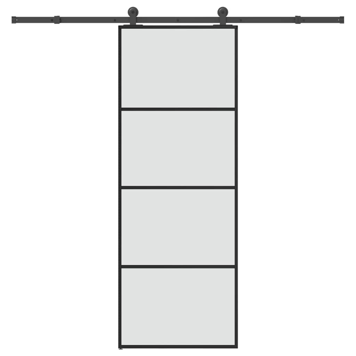 Add a touch of modern style to your home with this sliding door instantly. It provides the perfect solution for a space-saving opening. Durable material: Thanks to the intelligent structure, ESG glass is stronger and more durable than any other glass. Tempered glass is known to withstand heavy impacts, scratches, blows, etc.Stable and long-lasting frame: Aluminum is both lightweight and durable, with excellent corrosion resistance due to its self-protective oxide layer. This aluminum door is designed for longevity, making it an ideal choice for anyone seeking a robust door.Safe and noiseless: Thanks to the stopper, which stops the door when opening or closing by triggering the stop buffers, the sliding door can also be opened and closed quietly.Easy to use: A sliding door hardware set is also included in the scope of delivery, so that installation is effortless. The hardware set is made of powder-coated steel and thus contributes to the robustness of the door.Space-saving design: This sliding door saves space and makes the room feel more spacious. It is the first choice for a simple and atmospheric interior design in a modern style.