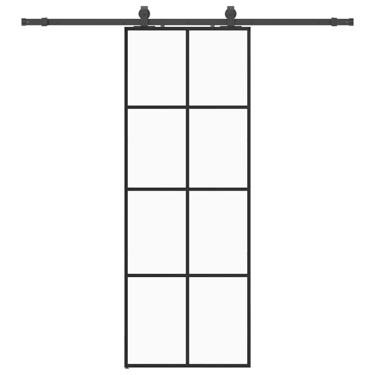 This sliding door is designed to enrich the entrance area of your house and also ensure better security for your home. Durable material: Thanks to the intelligent structure, ESG glass is stronger and more durable than any other glass. Tempered glass is known to withstand heavy impacts, scratches, blows, etc.Sturdy sliding rails: Steel is an exceptionally hard and strong material. It offers sturdiness and stability. The powder coating on steel creates a protective layer against wear and tear. Made of powder-coated steel, the sliding rails are sturdy, durable and heavy-duty.Quiet and smooth sliding: Thanks to the internal bearings, your internal sliding door will slide smoothly and quietly. Doorstops are also included to prevent the derailing of the rollers, while the rubber gaskets will buffer the bump from rollers and reduce the noise.Space-saving design: This sliding door saves space and looks more spacious. It is the first choice for a simple and atmospheric modern home design.Wide applications: The sliding barn door can be installed on both wooden walls and concrete walls. It's great for use in the bedroom, kitchen, barn, garage, etc. Good to know:Good to know: For installation, you can consult our installation guide for the door and sliding hardware kits.
