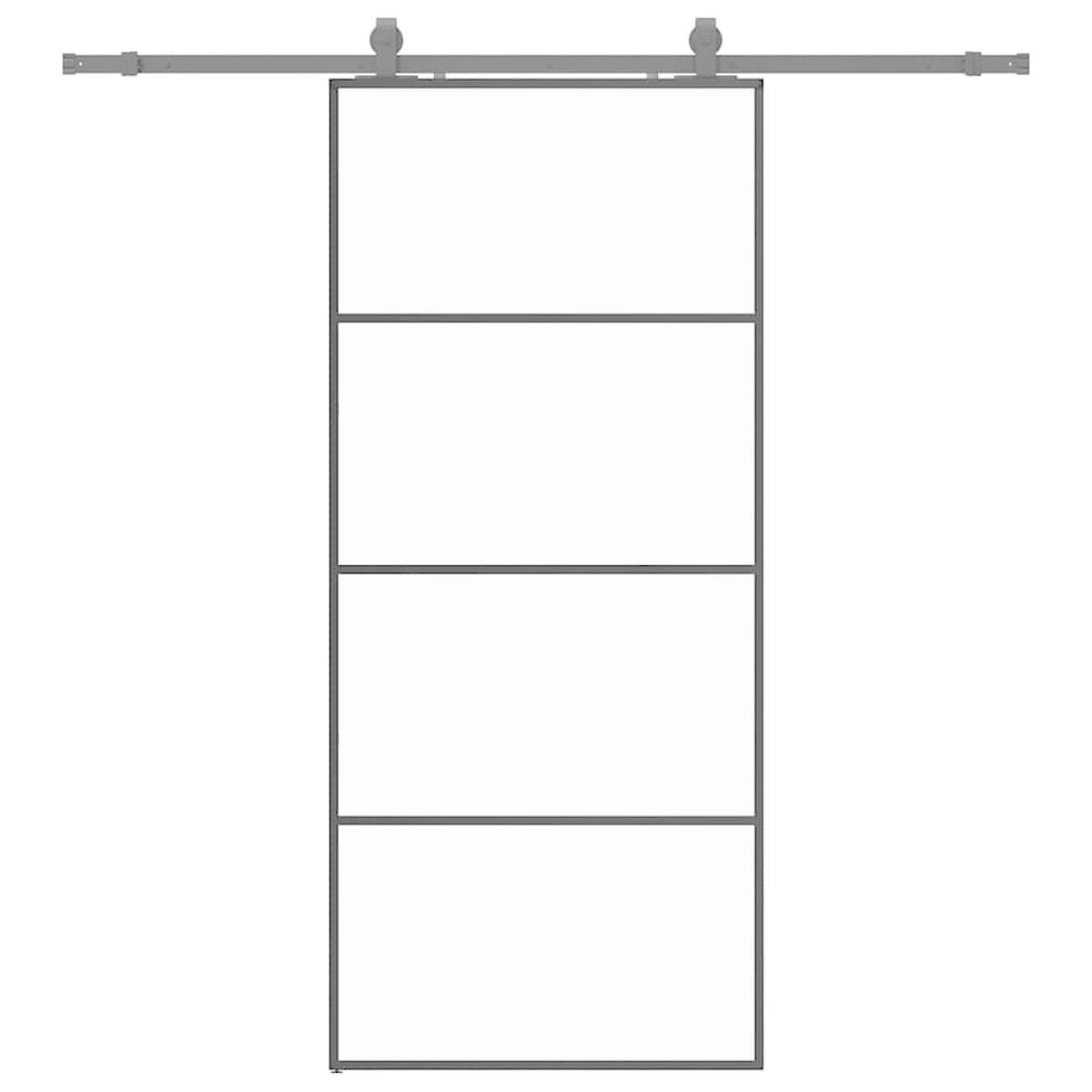 This sliding door is designed to enrich the entrance area of your house and also ensure better security for your home. Durable material: Thanks to the intelligent structure, ESG glass is stronger and more durable than any other glass. Tempered glass is known to withstand heavy impacts, scratches, blows, etc.Sturdy sliding rails: Steel is an exceptionally hard and strong material. It offers sturdiness and stability. The powder coating on steel creates a protective layer against wear and tear. Made of powder-coated steel, the sliding rails are sturdy, durable and heavy-duty.Quiet and smooth sliding: Thanks to the internal bearings, your internal sliding door will slide smoothly and quietly. Doorstops are also included to prevent the derailing of the rollers, while the rubber gaskets will buffer the bump from rollers and reduce the noise.Space-saving design: This sliding door saves space and looks more spacious. It is the first choice for a simple and atmospheric modern home design.Wide applications: The sliding barn door can be installed on both wooden walls and concrete walls. It's great for use in the bedroom, kitchen, barn, garage, etc. Good to know:Good to know: For installation, you can consult our installation guide for the door and sliding hardware kits.