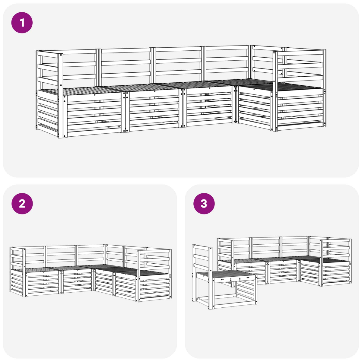 The outdoor furniture set combines style and functionality, creating a striking centerpiece for any garden or terrace. Its modern design, defined by clean lines and minimal detailing, adds elegance while supporting outdoor relaxation and social gatherings. Crafted entirely from solid acacia wood, the set ensures durability and lasting visual appeal, making it a perfect choice for those seeking both practicality and refined design in outdoor furniture. Durable Solid Acacia Wood: Crafted from solid acacia wood, this outdoor furniture set is known for its durability and resistance to outdoor conditions. The sturdy construction provides reliable support and long-lasting stability, while the warm natural tone enhances any garden or terrace setting. Weather-Resistant Design: This outdoor furniture set features a lacquered surface that provides an extra layer of protection against sun, light rain, and outdoor conditions. The polished finish helps preserve both appearance and functionality, ensuring long-lasting durability for your garden, terrace, or backyard. Components & Design: Every piece, from armrests to backrests, is designed for both style and function. Supportive features provide added comfort, while the cohesive design ensures a visually harmonious ensemble suitable for various outdoor occasions. Comfort &Versatility: The modular design allows flexible configurations to suit different spaces and needs. Perfect for relaxation, social gatherings, or quiet reading moments, this set adapts effortlessly to any outdoor environment, maximizing comfort and usability. Easy Care & Maintenance: To keep the furniture in good condition, clean the surface with a damp cloth and avoid harsh or abrasive cleaners. Regular care helps maintain its appearance and extends the lifespan of the furniture.