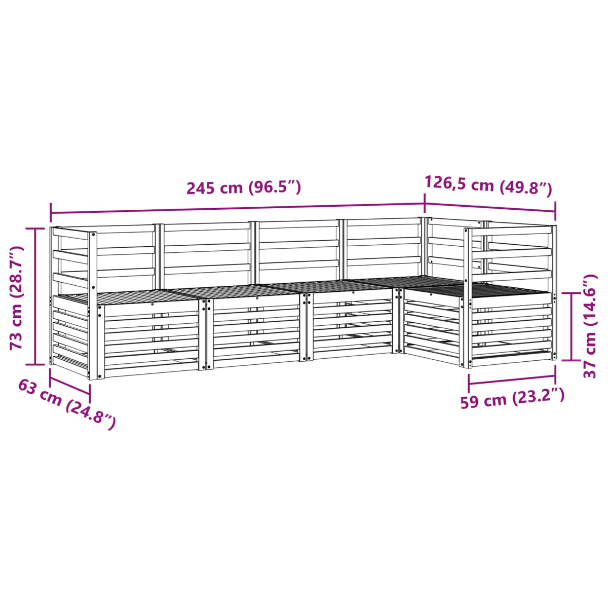 - Overall dimensions: 245 x 126.5 x 73 cm (L x W x H)
