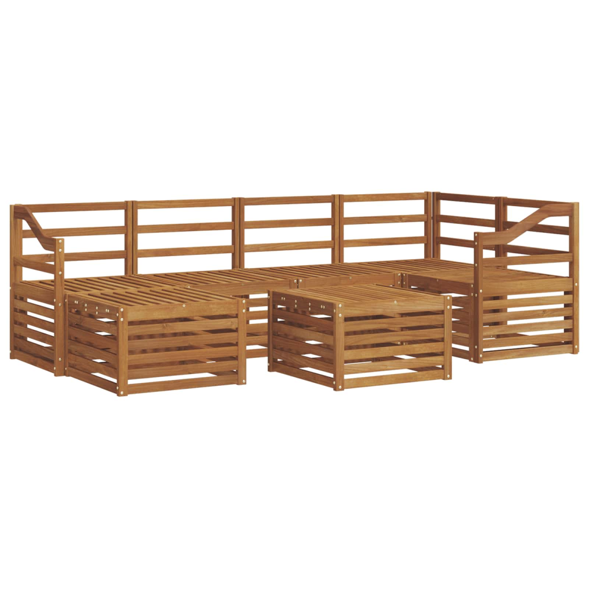 The outdoor furniture set combines style and functionality, creating a striking centerpiece for any garden or terrace. Its modern design, defined by clean lines and minimal detailing, adds elegance while supporting outdoor relaxation and social gatherings. Crafted entirely from solid acacia wood, the set ensures durability and lasting visual appeal, making it a perfect choice for those seeking both practicality and refined design in outdoor furniture. Durable Solid Acacia Wood: Crafted from solid acacia wood, this outdoor furniture set is known for its durability and resistance to outdoor conditions. The sturdy construction provides reliable support and long-lasting stability, while the warm natural tone enhances any garden or terrace setting. Weather-Resistant Design: This outdoor furniture set features a lacquered surface that provides an extra layer of protection against sun, light rain, and outdoor conditions. The polished finish helps preserve both appearance and functionality, ensuring long-lasting durability for your garden, terrace, or backyard. Components & Design: Every piece, from armrests to backrests, is designed for both style and function. Supportive features provide added comfort, while the cohesive design ensures a visually harmonious ensemble suitable for various outdoor occasions. Comfort &Versatility: The modular design allows flexible configurations to suit different spaces and needs. Perfect for relaxation, social gatherings, or quiet reading moments, this set adapts effortlessly to any outdoor environment, maximizing comfort and usability. Easy Care & Maintenance: To keep the furniture in good condition, clean the surface with a damp cloth and avoid harsh or abrasive cleaners. Regular care helps maintain its appearance and extends the lifespan of the furniture.