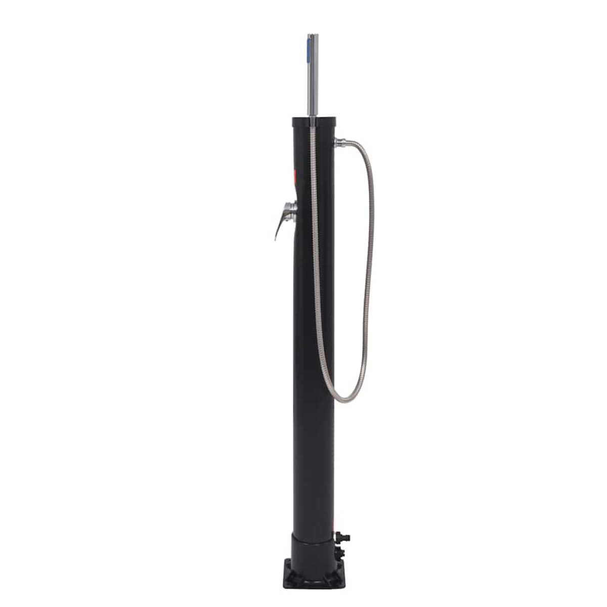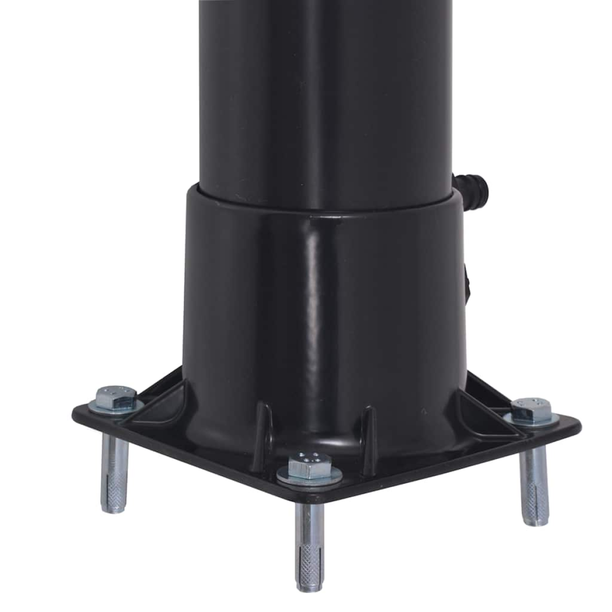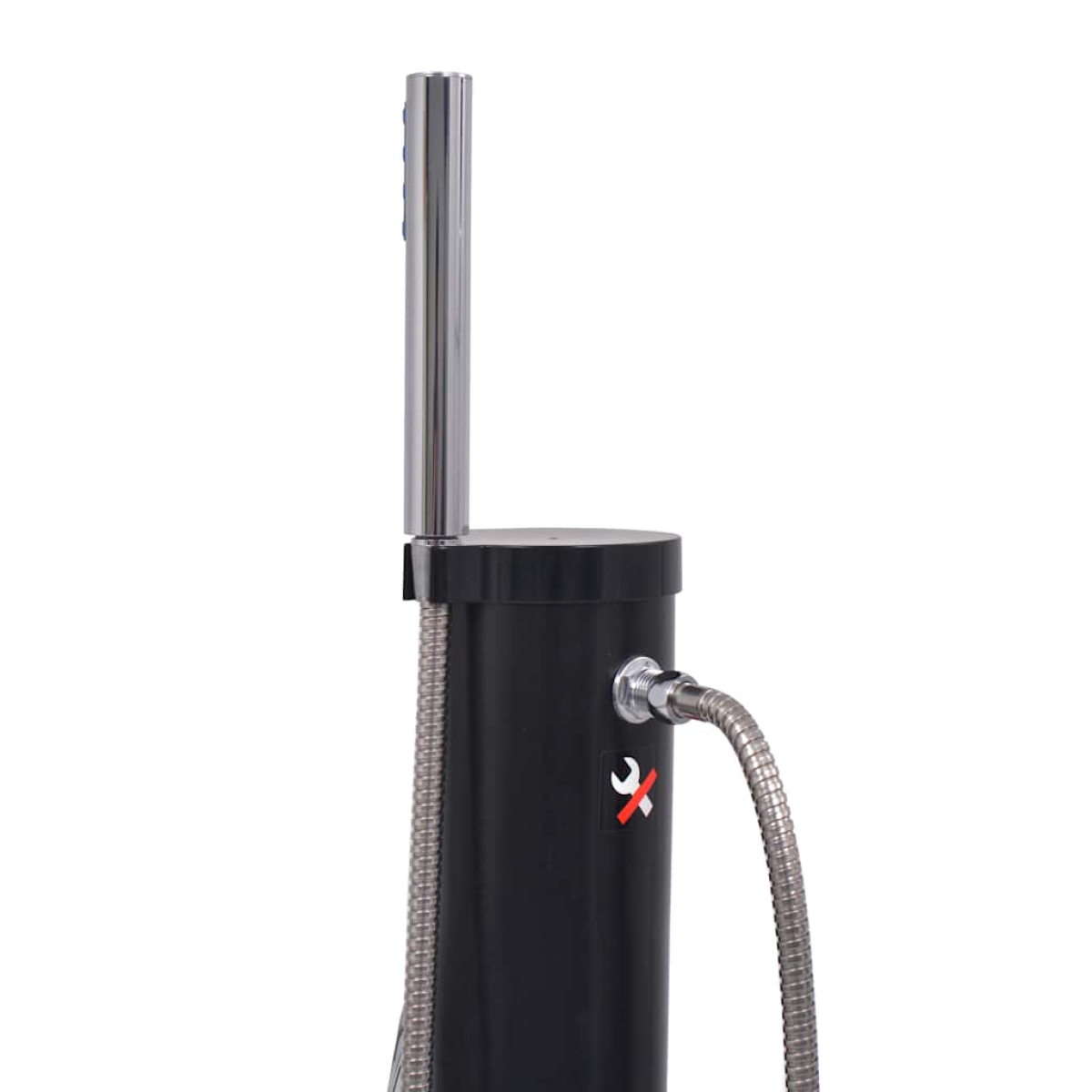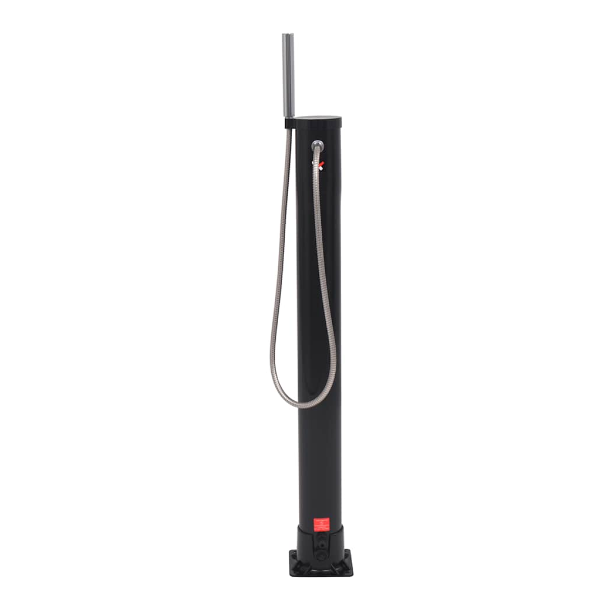 Enjoy a warm shower by the pool or in the garden with this convenient solar shower! It has a reservoir with a capacity of 8 L and uses solar power to heat the water. Without the need for any heating equipment, the solar shower is energy saving. The reservoir is made of non-hazardous PVC. The black colour helps to increase heat absorption. The solar shower is easy to use. You can easily adjust the water temperature by simply turning the handle. The solar shower is equipped with a handheld showerhead and a flexible hose. Thanks to the high-quality steel base and included ground anchors, the outdoor shower can be fixed to the ground. Assembly is easy. Note: We recommend emptying the water in the reservoir in the winter.