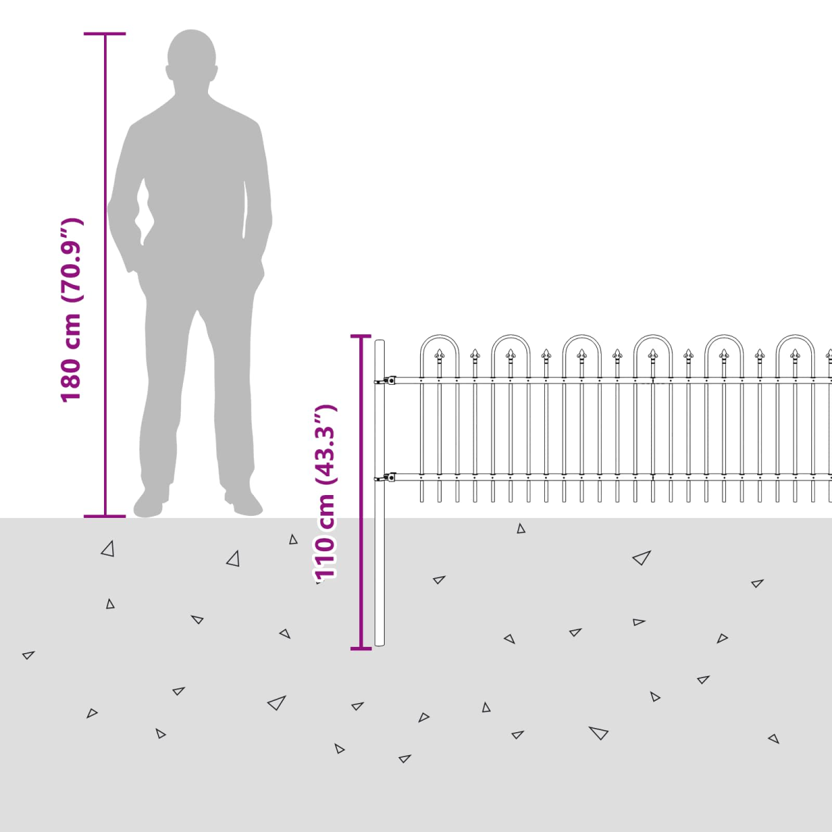 The Modern Spike Arch Fence is a stylish choice for your outdoor spaces, featuring a sleek rectangular design characteristic of modern aesthetics. Its minimalist approach perfectly complements any contemporary garden or outdoor setting, providing a sense of sophistication and order. People seeking both security and style will find this fence ensuring functionality without compromising visual appeal. Materials: The powder-coated steel construction provides both elegance and sturdiness, ensuring that the fence remains a permanent fixture in your outdoor areas. The steel is specifically treated to withstand weather-related wear and tear, offering a sophisticated appearance coupled with resilience against and .This choice of material not only guarantees longevity but also demands minimal maintenance, keeping your outdoor settings immaculate. Included Components: Connection accessories allow users to adjust the fence angle, enhancing flexibility and customization. An interlocking panel system simplifies assembly, providing an intuitive setup even for those less experienced in handling outdoor installations. The thoughtful inclusion of these components serves both practical and aesthetic purposes, ensuring a seamless fit into various landscapes. Features /Function /Design: This fence epitomizes modern design with clean, simple lines and functionalities such as adjustable angles for varied landscaping needs. The spear top design adds a layer of security while enhancing its visual interest. Designed for ease of use, this fence offers solutions for diverse protection and decoration needs without excessive complication. Recommended Uses: Ideal for gardens, pathways, and property borders, this fence adapts effortlessly to different outdoor spaces. The understated style favors versatile use, providing a blend of aesthetics and security, fitting a range of environments from private lawns to public gardens, enhancing any outdoor experience. Care &Maintenance: Routine cleaning with a damp cloth maintains its pristine appearance, while its rust-resistant treatment minimizes general upkeep duties. Adhering to these care instructions ensures sustained quality and appearance, sparing owners excessive maintenance efforts.