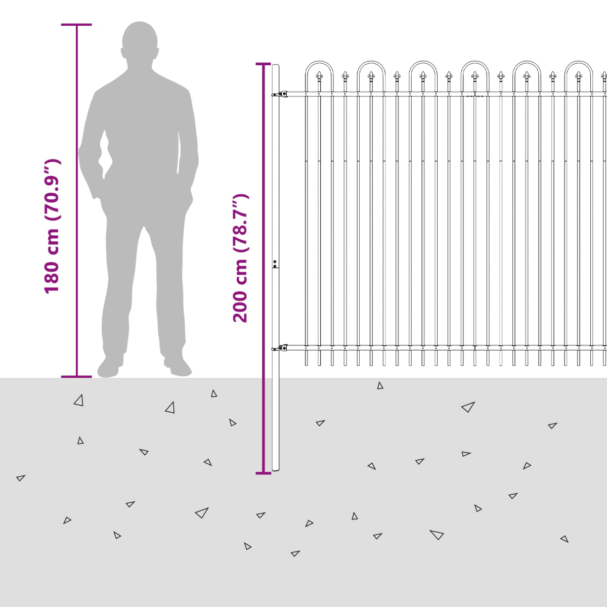 The Modern Spike Arch Fence is a stylish choice for your outdoor spaces, featuring a sleek rectangular design characteristic of modern aesthetics. Its minimalist approach perfectly complements any contemporary garden or outdoor setting, providing a sense of sophistication and order. People seeking both security and style will find this fence ensuring functionality without compromising visual appeal. Materials: The powder-coated steel construction provides both elegance and sturdiness, ensuring that the fence remains a permanent fixture in your outdoor areas. The steel is specifically treated to withstand weather-related wear and tear, offering a sophisticated appearance coupled with resilience against and .This choice of material not only guarantees longevity but also demands minimal maintenance, keeping your outdoor settings immaculate. Included Components: Connection accessories allow users to adjust the fence angle, enhancing flexibility and customization. An interlocking panel system simplifies assembly, providing an intuitive setup even for those less experienced in handling outdoor installations. The thoughtful inclusion of these components serves both practical and aesthetic purposes, ensuring a seamless fit into various landscapes. Features /Function /Design: This fence epitomizes modern design with clean, simple lines and functionalities such as adjustable angles for varied landscaping needs. The spear top design adds a layer of security while enhancing its visual interest. Designed for ease of use, this fence offers solutions for diverse protection and decoration needs without excessive complication. Recommended Uses: Ideal for gardens, pathways, and property borders, this fence adapts effortlessly to different outdoor spaces. The understated style favors versatile use, providing a blend of aesthetics and security, fitting a range of environments from private lawns to public gardens, enhancing any outdoor experience. Care &Maintenance: Routine cleaning with a damp cloth maintains its pristine appearance, while its rust-resistant treatment minimizes general upkeep duties. Adhering to these care instructions ensures sustained quality and appearance, sparing owners excessive maintenance efforts.