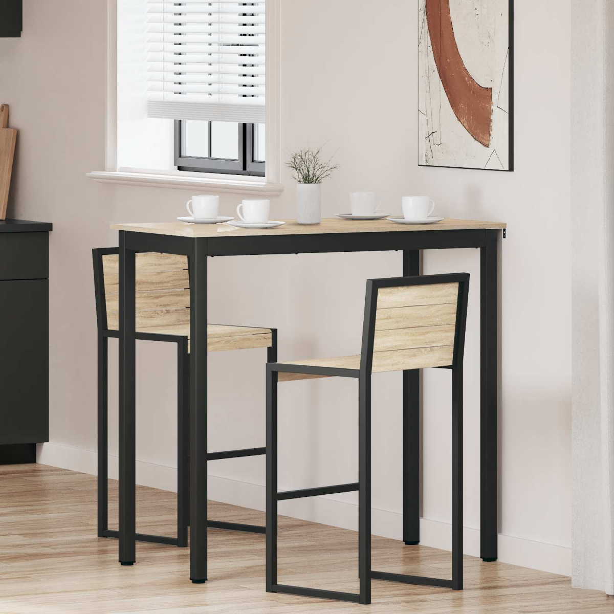 This Dining Table, designed for the kitchen and dining room, embodies a blend of modern aesthetics with practical usage. It functions as a centerpiece for meals, gatherings, and everyday activities, bringing both style and usability to your living space. The table boasts a rectangular shape that can easily fit varying room layouts, providing a versatile platform for dining and social engagement. Crafted for simplicity and elegance, its design allows it to seamlessly fit into contemporary home settings, appealing to those who appreciate functional design paired with straightforward elegance. Solid Materials: The table surface is crafted from engineered wood, offering resilience and an aesthetically pleasing look. Its robust metal legs and frame provide stability, ensuring it withstands regular use without compromising its sleek design. Functional Design: Featuring a rectangular shape, this table accommodates various room sizes and furniture arrangements. Its dimensions make it ideal for both intimate meals and hosting larger gatherings, enhancing its usability and universal appeal. Effortless Cleaning: Maintaining this dining table is simple. The sleek surface requires only a damp cloth for cleaning, ensuring it remains spotless with minimal effort, thus freeing up more of your time for enjoyment and relaxation. Practical Assembly: Assembly requires two people using a screwdriver. Its user-friendly setup ensures you can promptly enjoy your new furniture piece without unnecessary complexity. Stylish Appearance: Embodying modern style with its clean lines and understated design, it complements a wide range of interior décor, making it suitable for both contemporary and traditional settings.