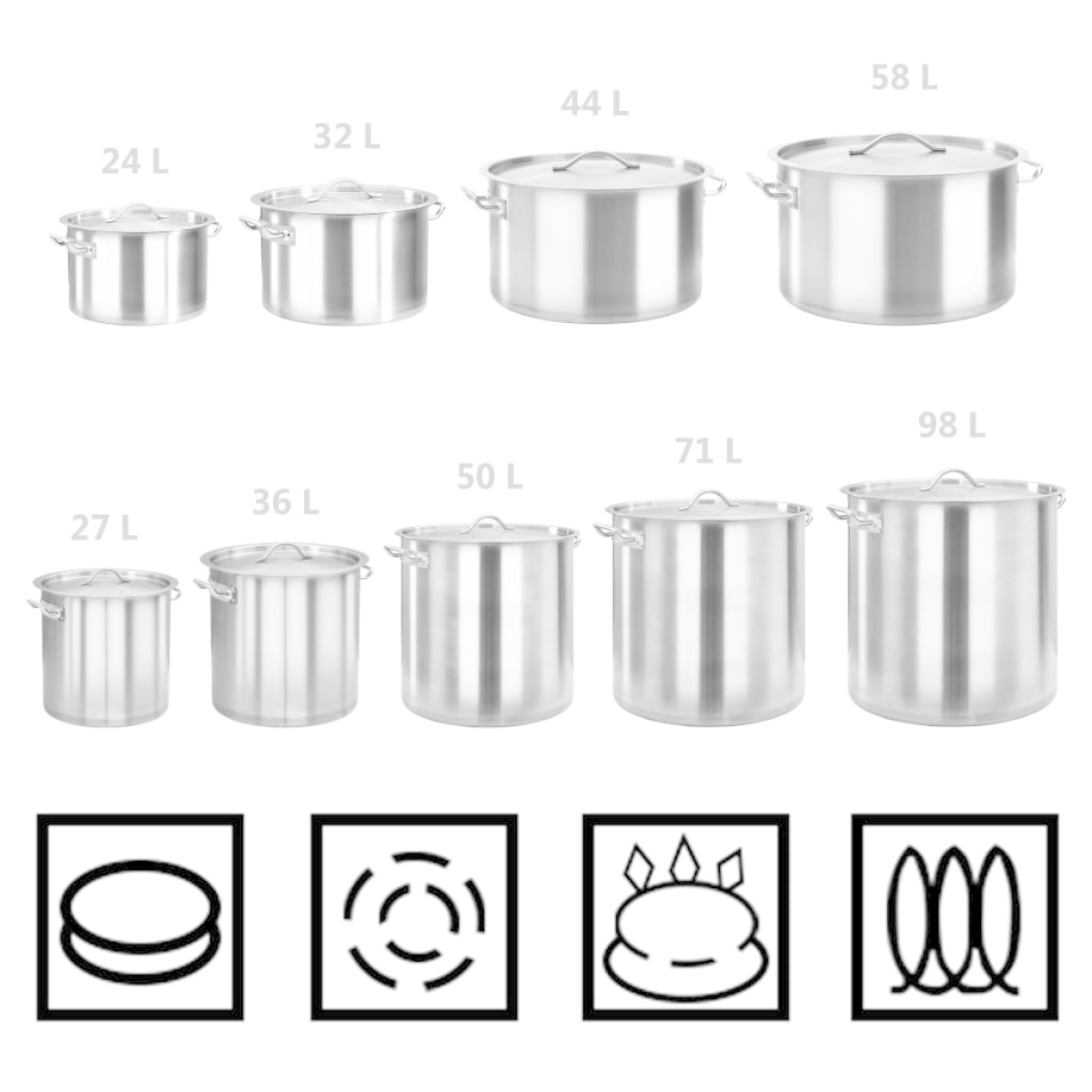 Made of premium stainless steel, this stock pot provides exceptional performance combined with durability and quality, which is truly a must-have in your kitchen! It can also serve in professional kitchen, hotel, restaurant catering. Great for soups, stews and sauces, this catering pot can deal with lots of kitchen works. The premium stainless steel material makes it suitable for induction and gas stoves. Additionally, its rolled edge and handles can avoid unexpected heating hurt. Let this stew pot be a great helper!