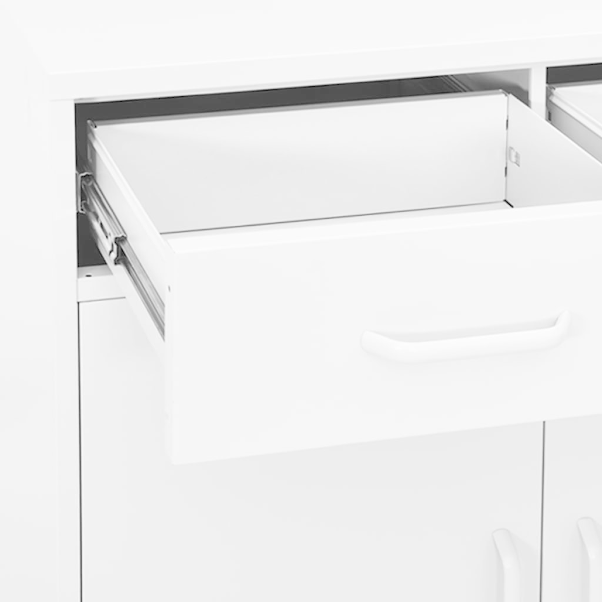 This steel cabinet will keep your house clean and well-organised! This storage cabinet is made of steel, making it sturdy and stable. The shelves provide ample storage space to keep your DVDs, multimedia appliances, books and small essential items organised and within reach. Drawers with 3 sections ballbearing runners ensure smooth opening and closing, even under increased load, these drawers can be fully extended. It is also easy to clean with a damp cloth.