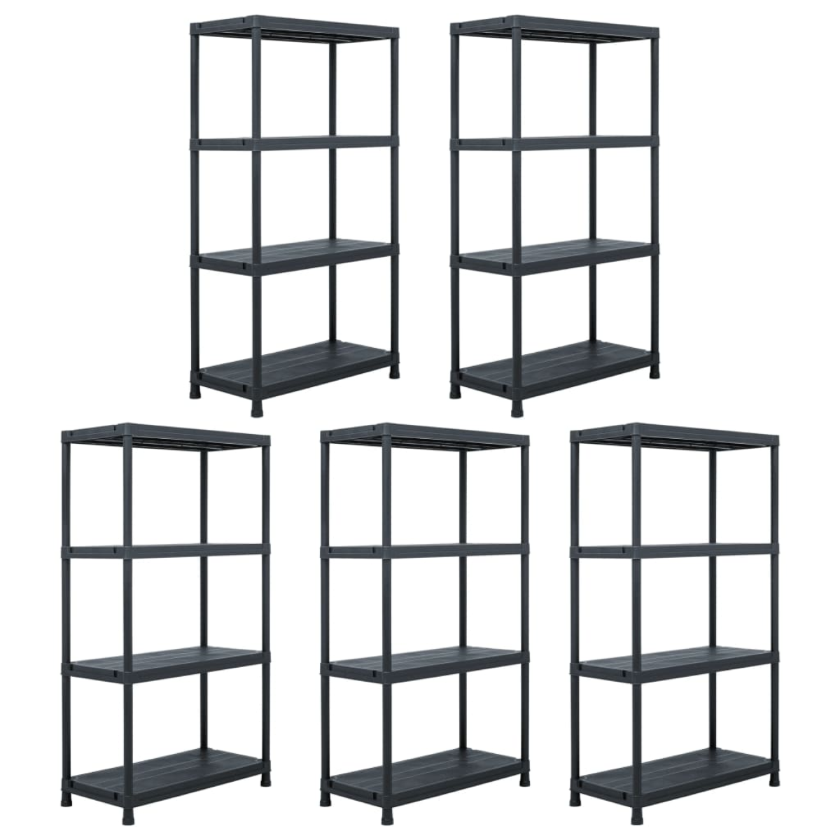 vidaXL Storage Shelf Racks 5 pcs Black 60x30x138 cm Plastic