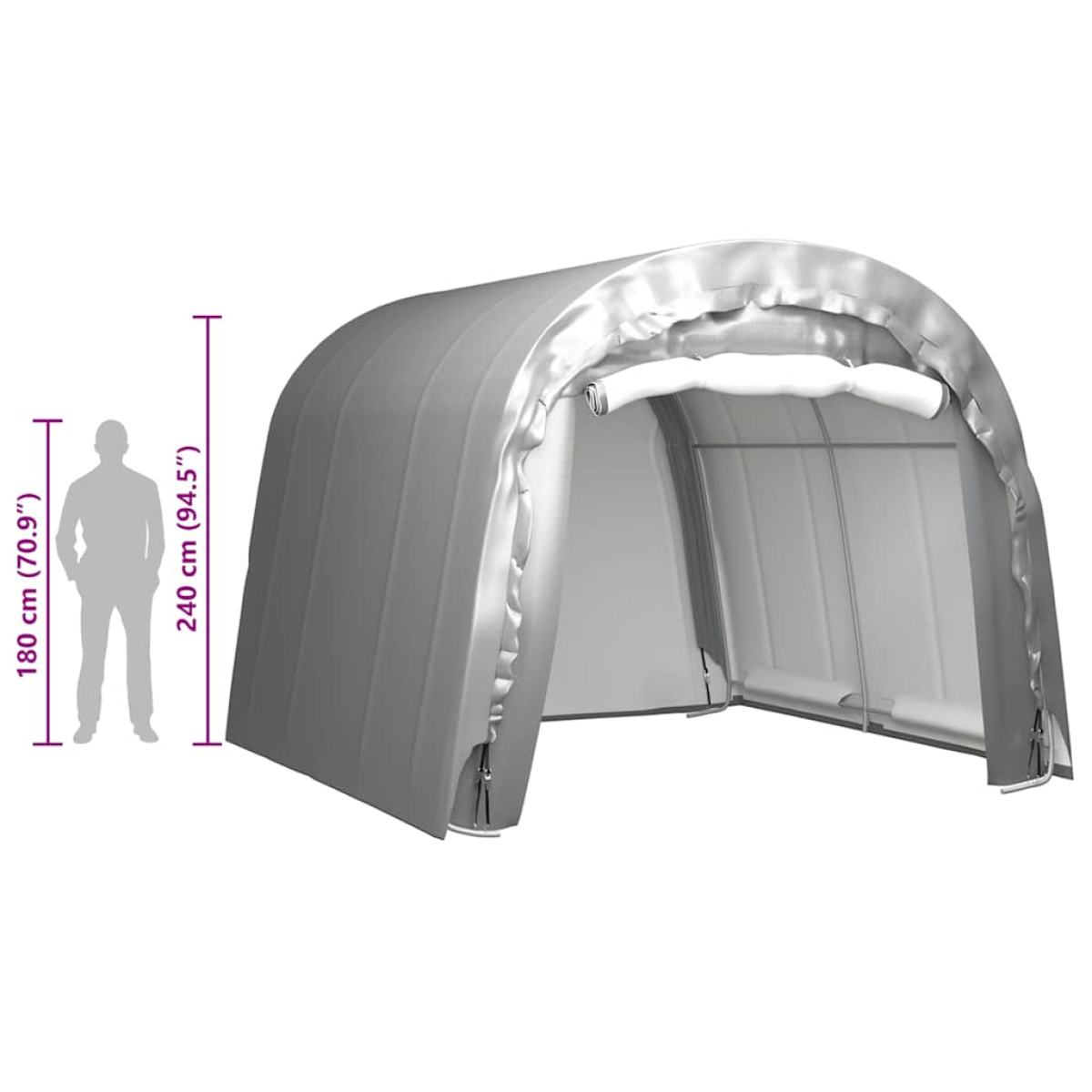 This classic multipurpose tent creates a protective spot for your outdoor equipment or anything you need to store, making a practical and decorative addition to your outdoor space. This storage tent is made of PE, waterproof and UV-resistant, protecting from the rain and sun’s heat. The galvanised steel frame structure adds to its sturdiness and stability. The open door design ensures fresh air in. It can also be a great choice for any outdoor events. Additionally, it can be neatly packed away for easy storage when not in use.