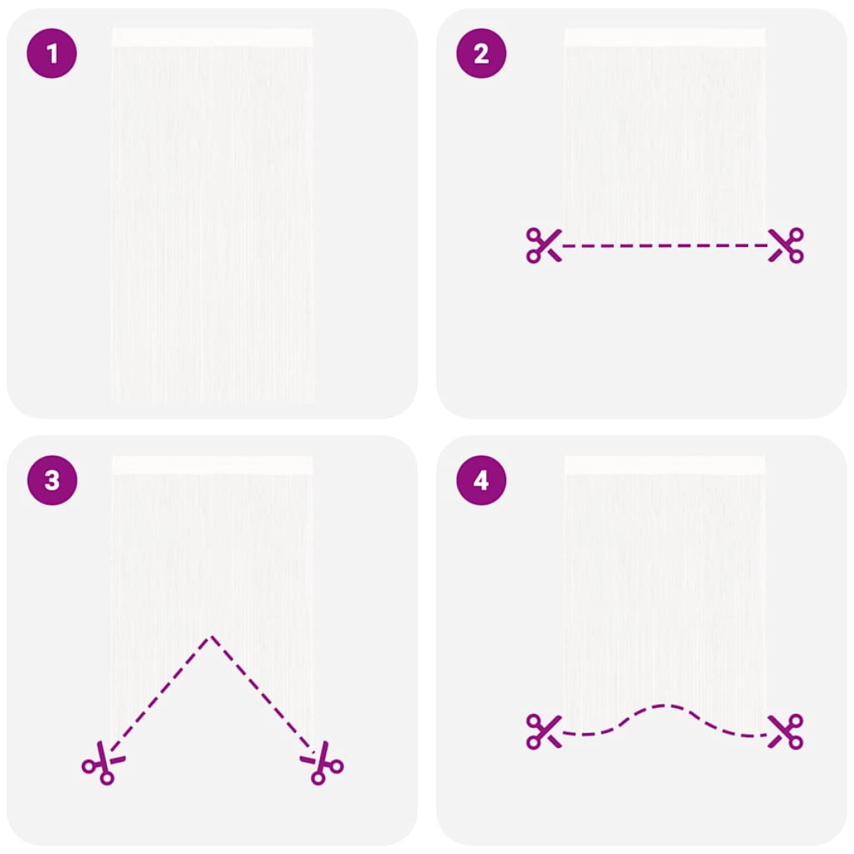 Our practical string curtains present a great way to decorate your interior. They can be used as a door curtain, window curtain, room divider or a background for a shop window display.The curtains are made of 100% polyester fabric and washable at low temperatures. If needed, the curtains are easy to cut to any required size. The curtains have a tunnel top, which makes them easy to attach to a curtain rod. Delivery includes 2 pieces of curtains and the curtain rod is not included.