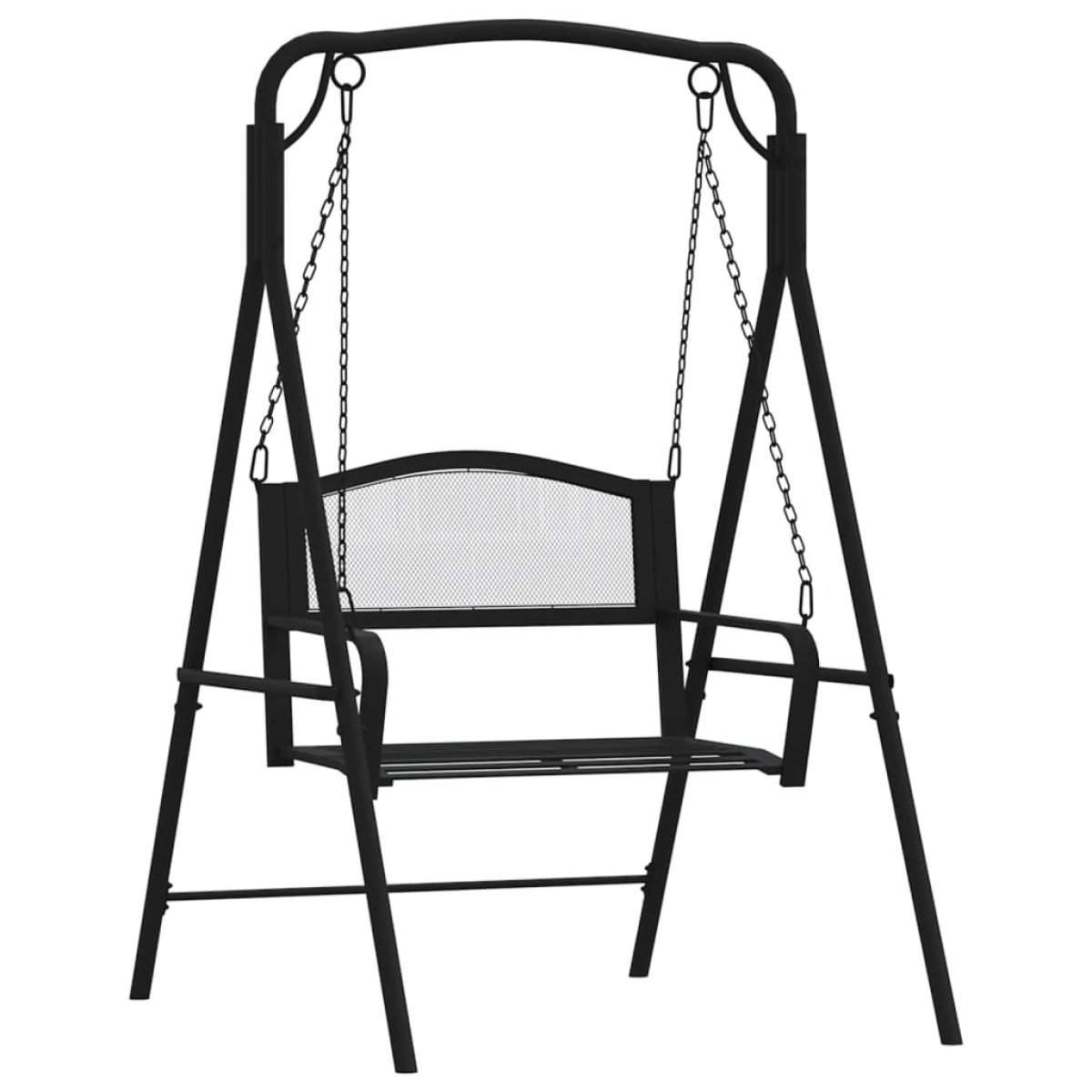 Take a load off in your any outdoor space on this classic metal swing bench. Swing function: You can hang the seat with included chains and then enjoy swaying on this hanging bench with a gentle breeze.Premium material: This bench seat is made of steel, weather-resistant and highly durable, making it perfectly suitable for daily outdoor use.Comfortable seating experience: The backrest and two armrests of this bench chair can provide good support. So you can enjoy the cool summer breeze under the open sky.Stylish look: The clean lines and elegant design will make this garden swing bench stand out in any garden, patio or balcony. Note:In order to extend the life of your outdoor furniture, we recommend you to clean it regularly and do not leave it outdoors without protection unnecessarily.Clean: Use a mild soap solution.Storing: If possible, store in a cool, dry place indoors. If the product is stored outdoors, protect it with a waterproof cover. Wipe and dry the excess water or snow from flat surfaces after a rain or snowfall. Allow sufficient air circulation to avoid moisture-related damage.