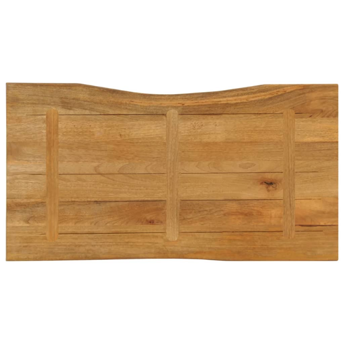 Give a new life to your table with this wooden table top. It is an excellent solution for freshening up your table at home or in a commercial setting. Solid mango wood: Solid mango wood is a strong, tropical hardwood that makes sturdy furniture. Its beautiful wood grains make every piece of furniture slightly different from the next.Versatile applications: The replacement table top can be combined with different bases according to your needs.Live edge design: The wooden furniture top has a rustic live edge. Due to that the knots, cracks, slightly curved shapes, and colour tones are part of it, and every piece has its unique character to display.Easy-to-clean surface: The smooth tabletop is easy to clean with a damp cloth. Good to know:Each item is unique with variations in colours and grains. The delivery is random, ensuring the exclusivity and individuality of your product.
