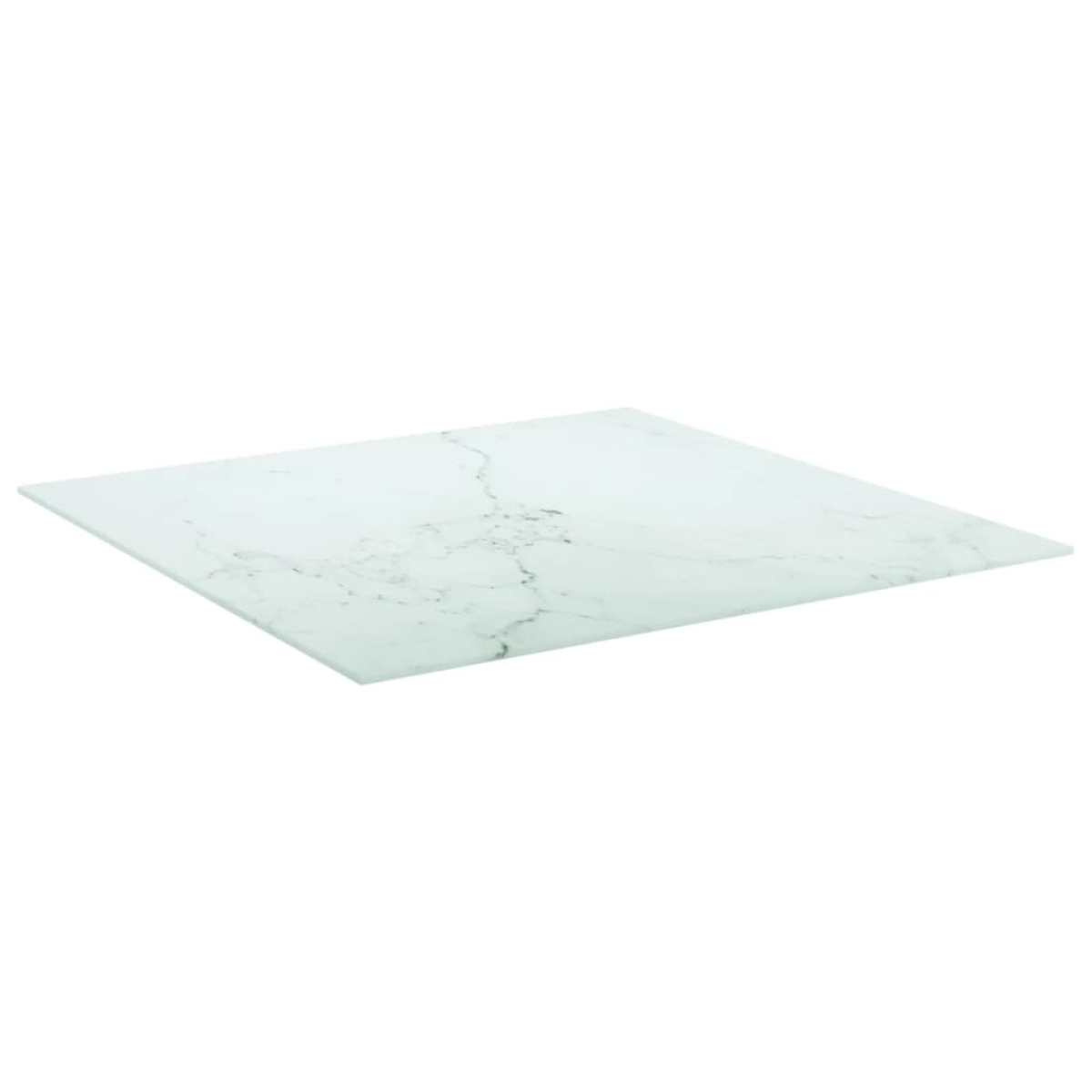 vidaXL Table Top White 70x70 cm 6 mm Tempered Glass with Marble Design