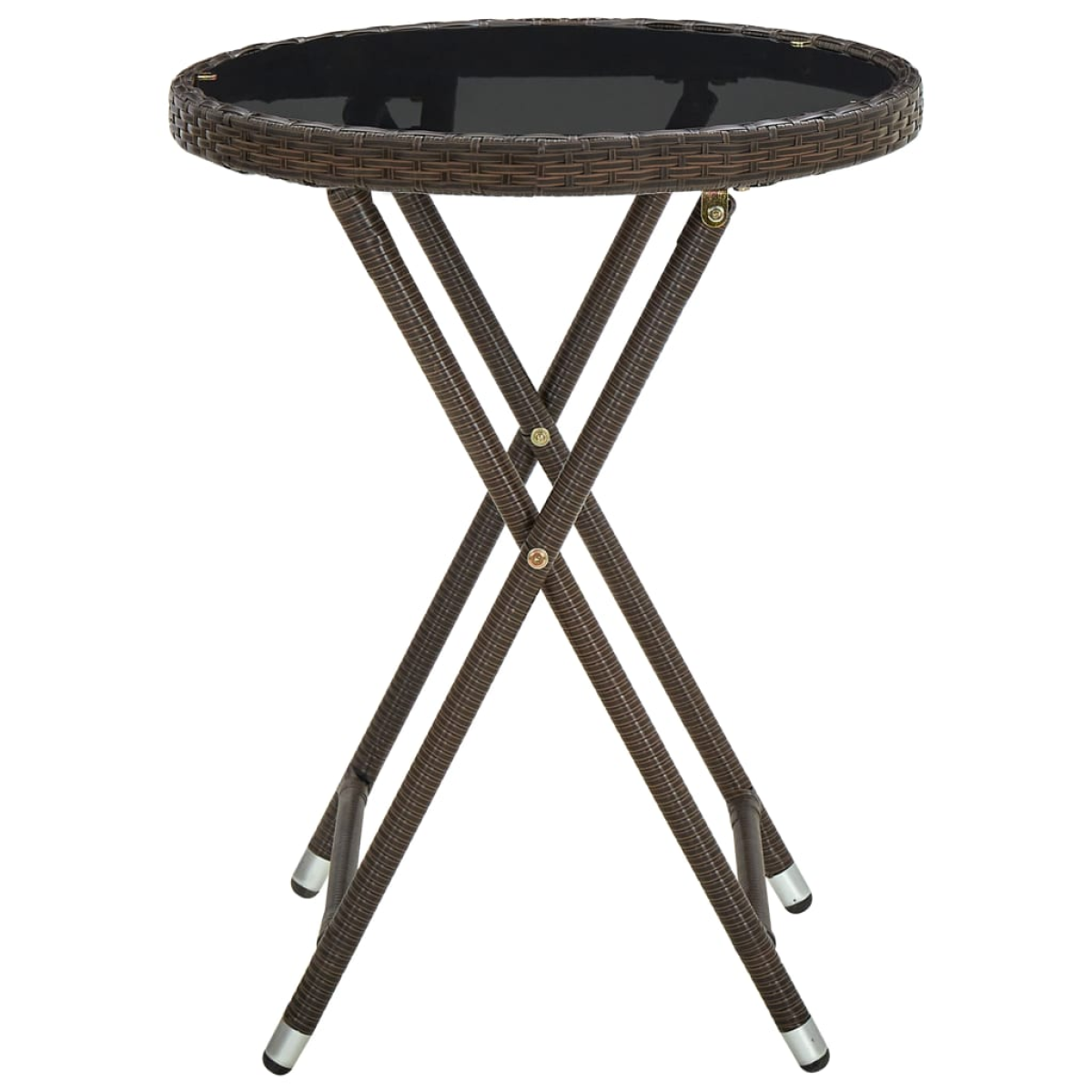 vidaXL Tea Table Brown 60 cm Poly Rattan and Tempered Glass