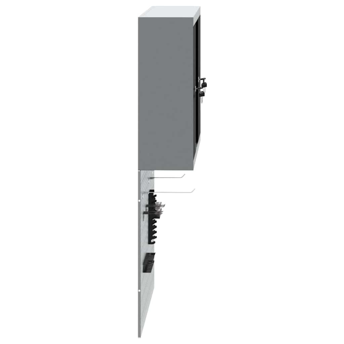 This versatile Wall Mounted Tool Cabinet and Pegboard Set is the essential piece for organizing your workshop or garage space. The set, featuring a sleek industrial design, brings an urban-inspired look with its powder-coated steel construction and smooth grey finish. Designed for indoor use, the cabinet provides a reliable solution to keep tools neatly stored and easily accessible, while the integrated pegboard adds functionality by allowing for customizable tool arrangements. Materials: Constructed from robust powder-coated steel, this cabinet set offers the ideal balance of strength and style. The smooth texture and grey finish lend a modern industrial appearance, guaranteeing long-term durability while effortlessly blending with various interior motifs. Comprehensive Components: The set includes metal shelves crafted from powder-coated steel to provide firm storage that withstands weight and regular use. With metal pegboards, users can easily customize tool organization, optimizing space for diverse tool types and sizes. Functional Design &Style: Featuring a wall-mountable design, the cabinet ensures valuable floor space is freed up, making it suitable for workshops or garages requiring efficient organization. This feature supports efforts to maintain an orderly and clean working environment. Versatile Usage Capabilities: While ideal for professional workshops, the flexibility of the cabinet's design makes it equally practical for home garages or DIY spaces. This adaptability allows users to transition effortlessly between different environments and project types. Simple Maintenance Instructions: Keeping this unit pristine is made easy with its smooth steel surface—just a quick wipe with a dry cloth maintains its clean, refined look. Simple cleaning steps ensure ongoing satisfaction and longevity of the cabinet's service and appearance.