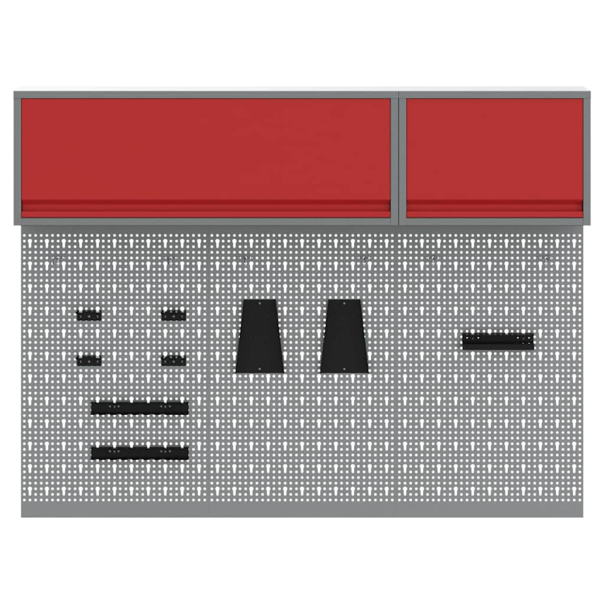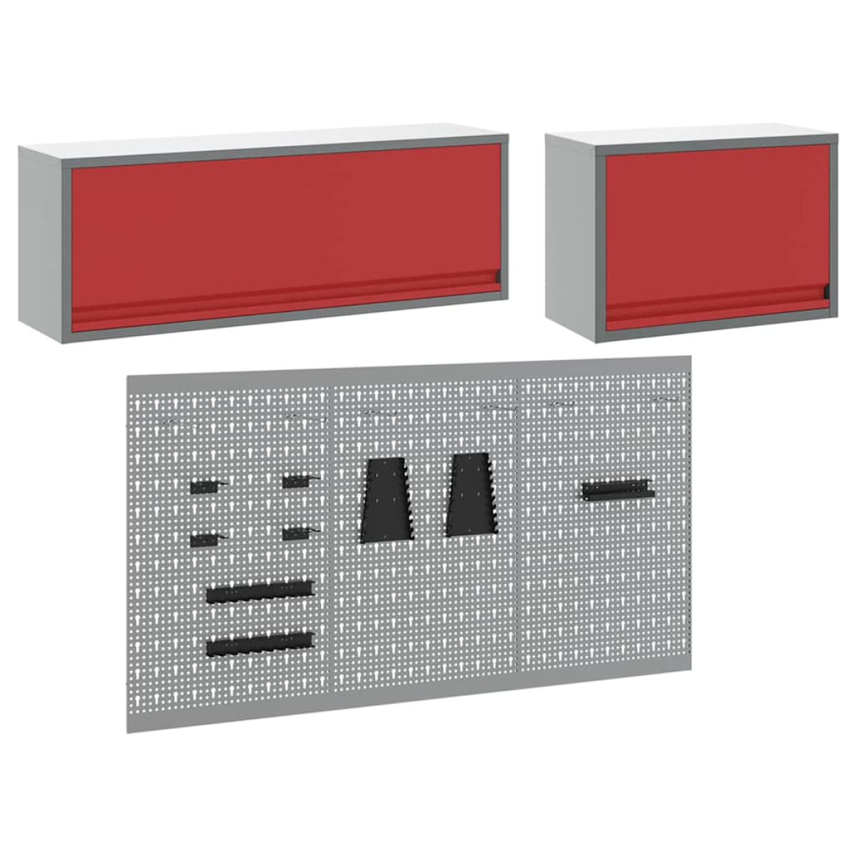This versatile Wall Mounted Tool Cabinet and Pegboard Set is the essential piece for organizing your workshop or garage space. The set, featuring a sleek industrial design, brings an urban-inspired look with its powder-coated steel construction and smooth grey finish. Designed for indoor use, the cabinet provides a reliable solution to keep tools neatly stored and easily accessible, while the integrated pegboard adds functionality by allowing for customizable tool arrangements. Materials: Constructed from robust powder-coated steel, this cabinet set offers the ideal balance of strength and style. The smooth texture and grey finish lend a modern industrial appearance, guaranteeing long-term durability while effortlessly blending with various interior motifs. Comprehensive Components: The set includes metal shelves crafted from powder-coated steel to provide firm storage that withstands weight and regular use. With metal pegboards, users can easily customize tool organization, optimizing space for diverse tool types and sizes. Functional Design &Style: Featuring a wall-mountable design, the cabinet ensures valuable floor space is freed up, making it suitable for workshops or garages requiring efficient organization. This feature supports efforts to maintain an orderly and clean working environment. Versatile Usage Capabilities: While ideal for professional workshops, the flexibility of the cabinet's design makes it equally practical for home garages or DIY spaces. This adaptability allows users to transition effortlessly between different environments and project types. Simple Maintenance Instructions: Keeping this unit pristine is made easy with its smooth steel surface—just a quick wipe with a dry cloth maintains its clean, refined look. Simple cleaning steps ensure ongoing satisfaction and longevity of the cabinet's service and appearance.