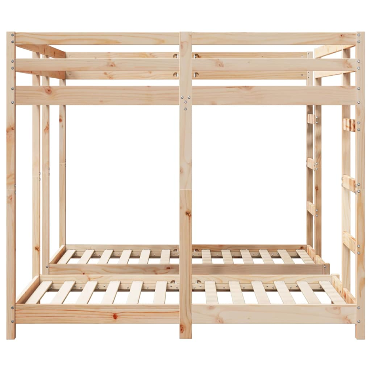 This Triple Bunk Bed Frame introduces a functional and stylish solution for shared bedrooms, combining space-saving ingenuity and modern design. Constructed from resilient solid pine wood, this versatile furniture piece fits perfectly in indoor settings, making it suitable for children's rooms, guest accommodations, or compact living areas. Its robust structure elegantly showcases a wooden texture that complements various interior styles and offers families a practical way to optimize space without sacrificing aesthetics. Material Quality: Crafted from solid pine wood, this triple bunk bed boasts a sturdy structure that enhances durability and stability. The natural grain of the wood adds warmth and character to any bedroom interior, offering an aesthetically pleasing yet functional accommodation solution. Included Components: Equipped with two ladders and sturdy guardrails, the bunk bed ensures secure and easy access to the topmost bunk, providing peace of mind for safety-conscious households. Each component is thoughtfully designed to improve accessibility and child safety, underscoring its family-friendly appeal. Space-saving Efficiency: The triple bunk design is an inventive space-saving solution, perfect for compact living spaces or shared bedrooms. This configuration maximizes vertical space, enabling more room for play, storage, or additional furniture in the room. Recommended Uses: Ideal for children’s rooms, guest rooms, or cabins, the bed's functional design fits effortlessly into studios or urban apartments. It's a practical choice for anyone needing flexible sleeping arrangements in confined spaces, thereby adding convenience and value. Assembly and Maintenance: Requires assembly by two individuals using a screwdriver. Regular dusting and minimal care preserve the wood's natural appearance, ensuring continued longevity and appeal with proper maintenance.