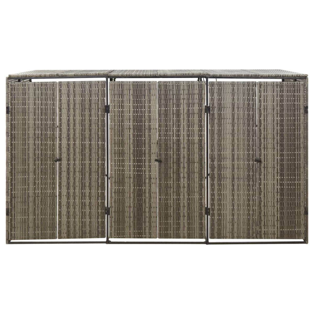 vidaXL Triple Wheelie Bin Shed Grey 207x80x117 cm Poly Rattan