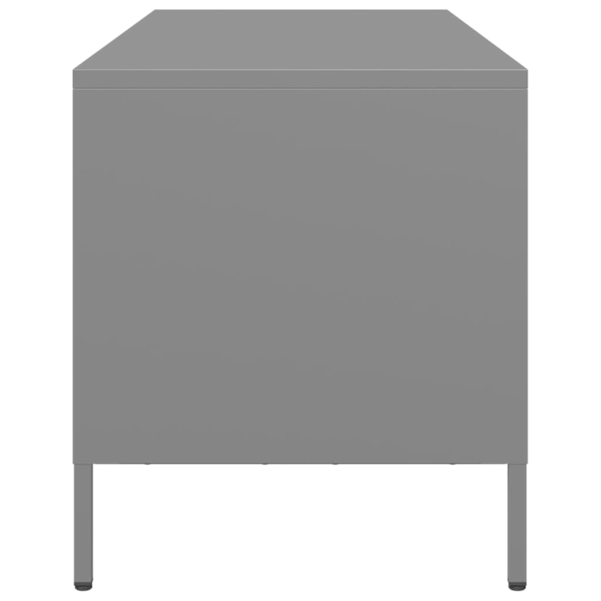 This sturdy TV cabinet with an industrial style makes a timeless addition to your living room or bedroom. Stable material: The TV stand's frame is made of cold-rolled steel. Cold-rolled steel is a kind of low-carbon steel produced by a "cold rolling" method and processed at near-normal room temperatures. Cold-rolled steel has a smoother surface, greater strength, and higher precision.Ample storage space: The cabinet with 2 compartments and 2 drawers offers ample storage space for keeping your various daily essentials well organised and within easy reach.Adjustable screw feet: This TV sideboard is equipped with four adjustable screw feet to compensate for uneven floors, ensuring stability and balance.Easy to clean: The metal cabinet is easy to clean with a damp cloth and requires less maintenance.