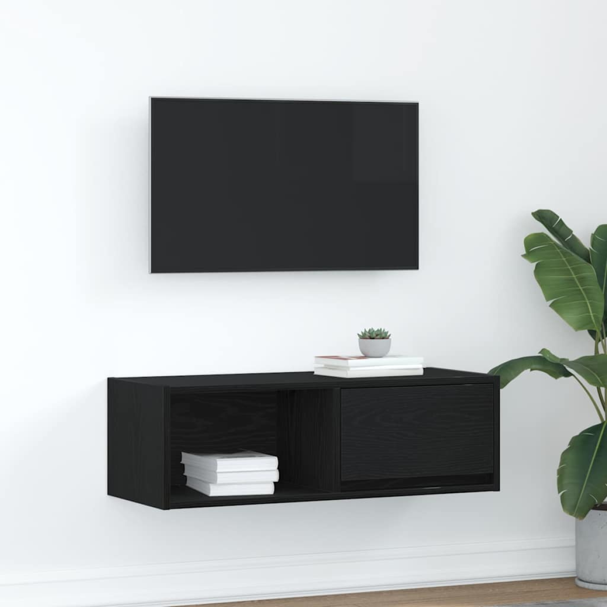 This TV wall cabinet is the perfect solution for your living space to maximise space and keep the floor areas uncluttered. Stable and durable material: Engineered wood is a durable and stable material with a smooth surface that is resistant to moisture, warping, and splitting, making it a reliable choice for a variety of projects.Ample storage space: This TV bench provides ample storage space for keeping your magazines, books, DVDs, and multimedia devices well-organised and within reach.Stable and sturdy tabletop: The sturdy top is ideal for placing your TV and stereo systems or some decorative items like vases or potted plants.Space-saving design: The TV sideboard can be wall-mounted to add extra storage space. That way, you can maximise your floor space and keep the area clean.Easy to maintain: Thanks to its smooth surface, the hifi cabinet is easy to clean with a damp cloth and requires less maintenance.