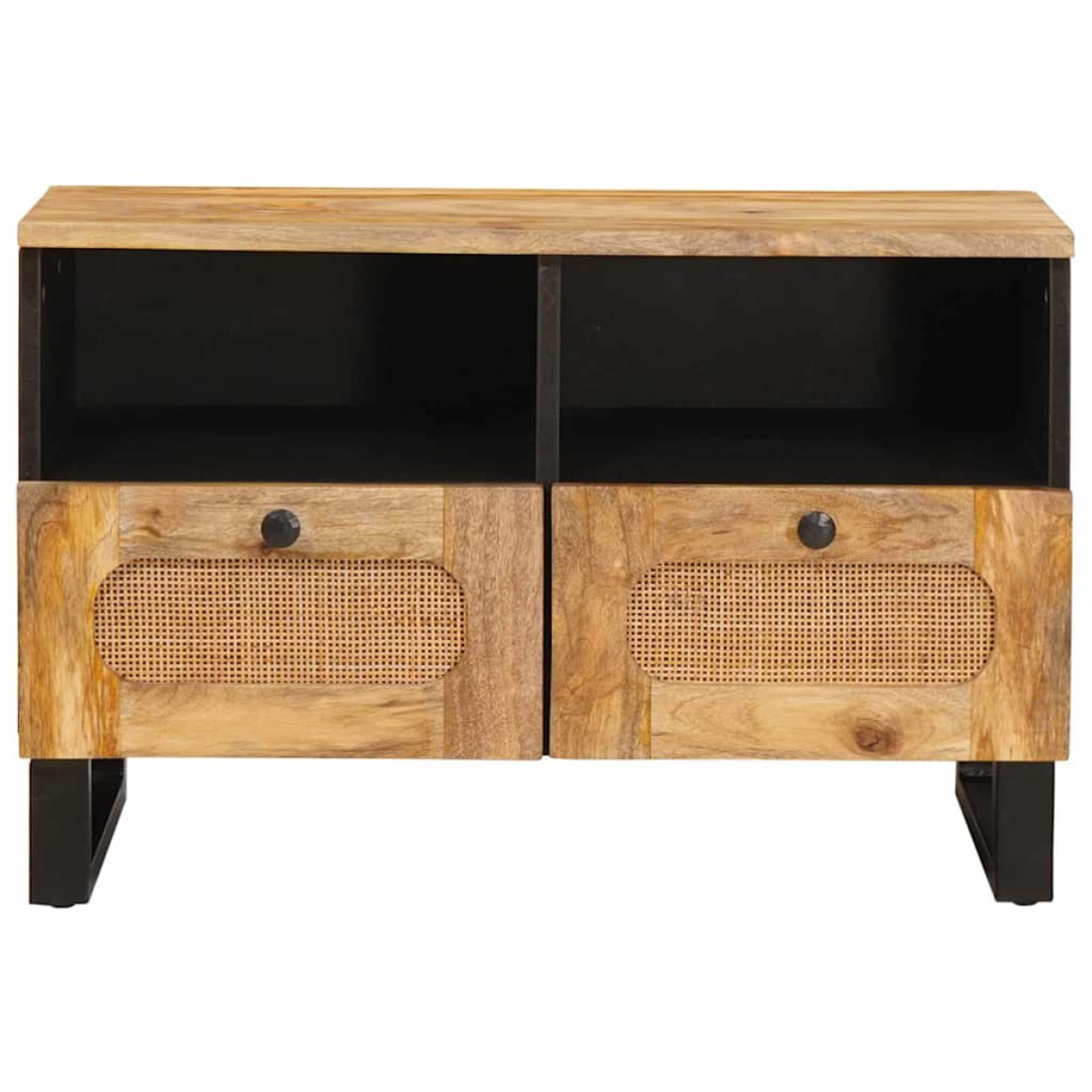 This elegant Modern TV Cabinet blends seamlessly into any living room, showcasing sleek lines and a minimalist design. Featuring a subtle yet sophisticated color palette, it serves as a statement piece while providing ample storage for media accessories and living room essentials. Materials: Constructed with solid mango wood, this TV cabinet offers both durability and a luxurious look. The engineered wood complements the overall integrity, ensuring a long-lasting and stable product designed to withstand daily use. Included Components: Equipped with functional board shelves and drawers, these provide essential storage for media devices, remote controls, and miscellaneous items. Alongside, metal square legs offer robust support and stability, while the sturdy MDF back type ensures the cabinet remains presentable from all angles. Features /Function /Design: Boasting a shape that fits well in any modern home, the rectangular layout of this cabinet is both stylish and functional. Knob handles add a touch of elegance, complementing the cabinet's overall minimalist aesthetic that prioritizes organization and neatness. Recommended Uses: Ideal for living rooms, this cabinet enhances the comfort of any space by organizing and displaying media equipment attractively. Its adaptable design suits various styles, making it a versatile addition to modern homes seeking both style and function. Care &Maintenance: To preserve its lustrous finish, clean the cabinet periodically using a dry cloth. Avoid direct sunlight or moisture exposure to maintain the cabinet's appearance. Proper care ensures the TV cabinet remains a focal point in your living area for years.