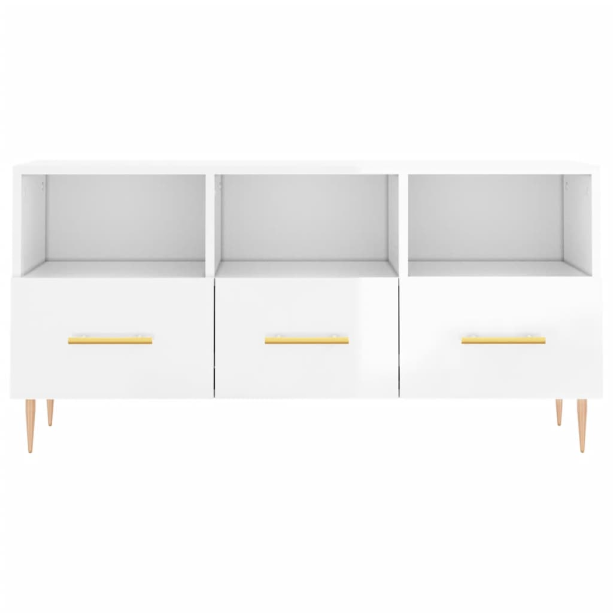 This sturdy TV cabinet is designed to be a focal point of your room with a trendy yet practical design. Sturdy material: The engineered wood is of exceptional quality with smooth surface and also features strength, stability and resistance to moisture. Made of engineered wood, the TV stand is easy to clean.Spacious storage: The TV unit has 3 compartments and 3 drawers which make it an ideal place for storing all your magazines, DVDs and other items.Displaying function: The sturdy top of the media cabinet is ideal for displaying decorative items like photo frames and plants.Iron legs: The iron legs add a calm style to your interior while ensuring stability. Warning:In order to prevent overturning, this product must be used with the wall attachment device provided.