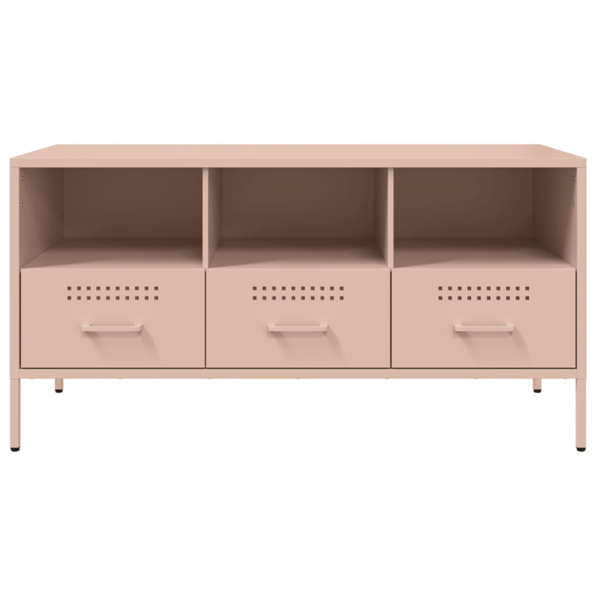 This sturdy TV cabinet with an industrial style makes a timeless addition to your living room or bedroom. Stable material: The TV stand's frame is made of cold-rolled steel. Cold-rolled steel is a kind of low-carbon steel produced by a "cold rolling" method and processed at near normal room temperatures. Cold-rolled steel has a smoother surface, greater strength, and higher precision.Ample storage space: This TV bench provides ample storage space for keeping your magazines, books, DVDs, remote control and other small items well-organised and within reach.Adjustable screw feet: This TV sideboard is equipped with four adjustable screw feet to compensate for uneven floors, ensuring stability and balance.Easy to clean: The media cabinet is easy to clean with a damp cloth and requires less maintenance. Warning:To prevent it from tipping over, this product must be used with the provided wall attachment device.