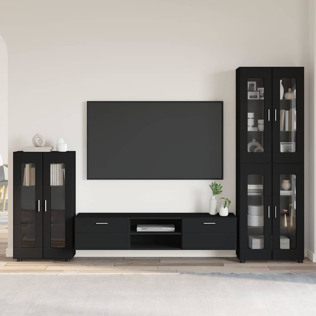 vidaXL TV Cabinet Set with Drawer FLORIN Black Engineered Wood