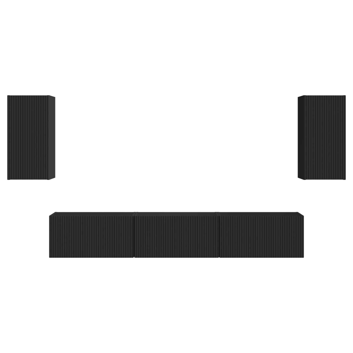 This Modern TV Cabinet Set offers a clean and contemporary design, perfect for enhancing any modern living room. Combining style with functionality, this sleek set features engineered wood surfaces designed to blend seamlessly with your home's décor. Its space-saving capabilities are ideal for those looking to maximize room without compromising on aesthetics. Material Build: Constructed entirely from engineered wood, the Modern TV Cabinet Set exudes a sophisticated and polished look. Engineered wood is known for its uniform texture and stability, making this set not only a stylish addition but also a durable one that can withstand everyday wear and tear in your living room. Wall-Mounted Functionality: Designed to be fixed onto the wall, this cabinet set saves floor space and provides a sleek, contemporary appearance. Its streamlined installation means your entertainment area remains clutter-free, offering a more organized and spacious environment. Practical Storage Options: Including a large wall cabinet and two smaller ones, it provides versatile storage solutions for your electronics and decorative items. These compartments help declutter your space, ensuring your living area remains neat and aesthetically pleasing. Component Materials: Each part of the set, including shelves, doors, and back materials, is made from engineered wood, ensuring cohesive styling across the unit. This standardization offers consistency in appearance and performance, maintaining a harmonious aesthetic throughout your living space. Assembly Requirements: The setup involves two people and requires common household tools such as a drill and screwdriver. This straightforward process ensures you can quickly have your cabinet set ready for use, optimizing both function and form in your living area.