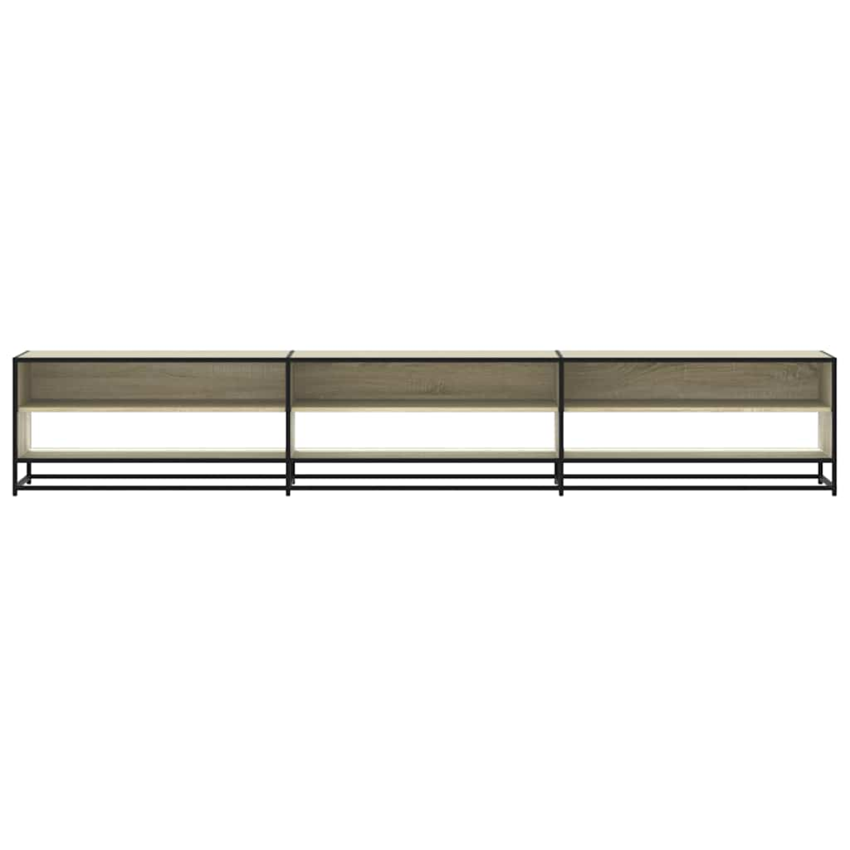 This TV cabinet with ample storage space is a practical and eye-catching addition to your living room or bedroom. Stable and durable material: Engineered wood is a durable and stable material with a smooth surface that is resistant to moisture, warping, and splitting, making it a reliable choice for a variety of projects.Stable and long-lasting frame: The metal frame of the TV stand cabinet enhances your interior with an industrial style and provides exceptional durability, stability and resistance to corrosion.Ample storage space: This TV bench provides ample storage space for keeping your magazines, books, DVDs, and multimedia devices well-organised and within reach.Stable and sturdy tabletop: The sturdy top is ideal for placing your TV and stereo systems or some decorative items like vases or potted plants.Easy to maintain: The TV stand is easy to clean with a damp cloth and requires less maintenance.