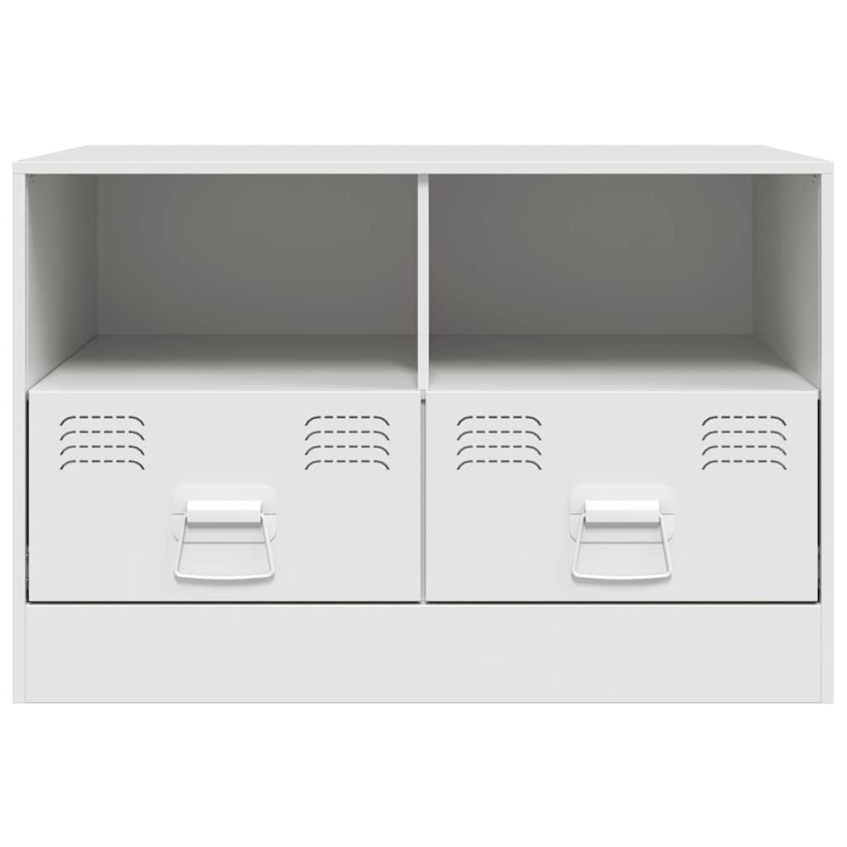 This sturdy TV cabinet is designed to be a focal point of your room with a trendy yet practical design. Stable material: The TV cabinet's frame is made of cold-rolled steel. Cold-rolled steel is a kind of low-carbon steel produced by a "cold rolling" method and processed at near normal room temperatures. Cold-rolled steel has a smoother surface, greater strength, and higher precision.Ample storage space: This cabinet offers handy storage space for keeping your magazines, books, remote controls and other small items well-organised and within reach.Easy to maintain: The table is easy to clean with a damp cloth and requires less maintenance.Practical handle: The TV cabinet comes with 2 handles that make it easy to open and close the cabinet while also adding to extra beauty.