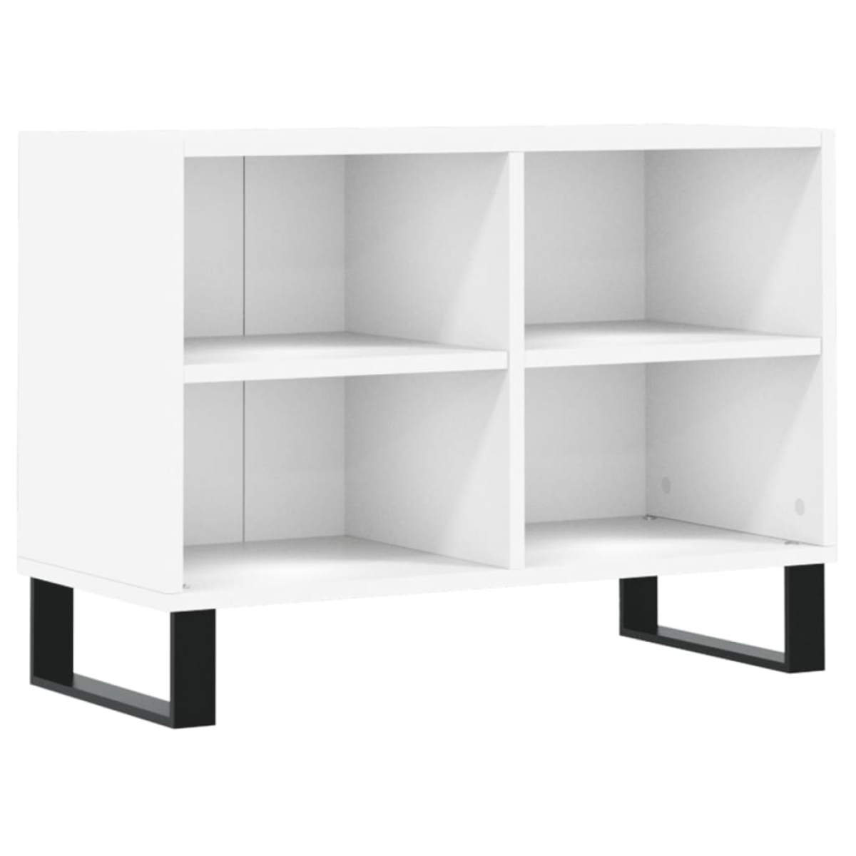 This TV cabinet with ample storage space is a practical and eye-catching addition to your living room or bedroom. Sturdy material: The engineered wood is of exceptional quality with smooth surface and also features strength, stability and resistance to moisture. Made of engineered wood, the TV stand is easy to clean with a damp cloth.Ample storage space: This TV bench has 4 compartments, offering ample storage space to keep your magazines, books, DVDs, and multimedia devices well organised and within reach.Stable tabletop: The stable tabletop of the TV sideboard is perfect for placing your books, cups and other decorative items.Iron legs: The iron legs of the TV stand cabinet ensure sturdiness and stability. Warning:To prevent it being overturned, this product must be used with the provided wall attachment device.