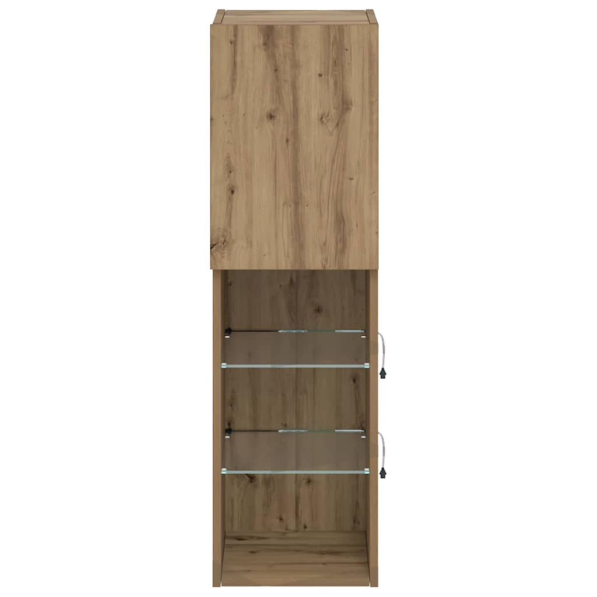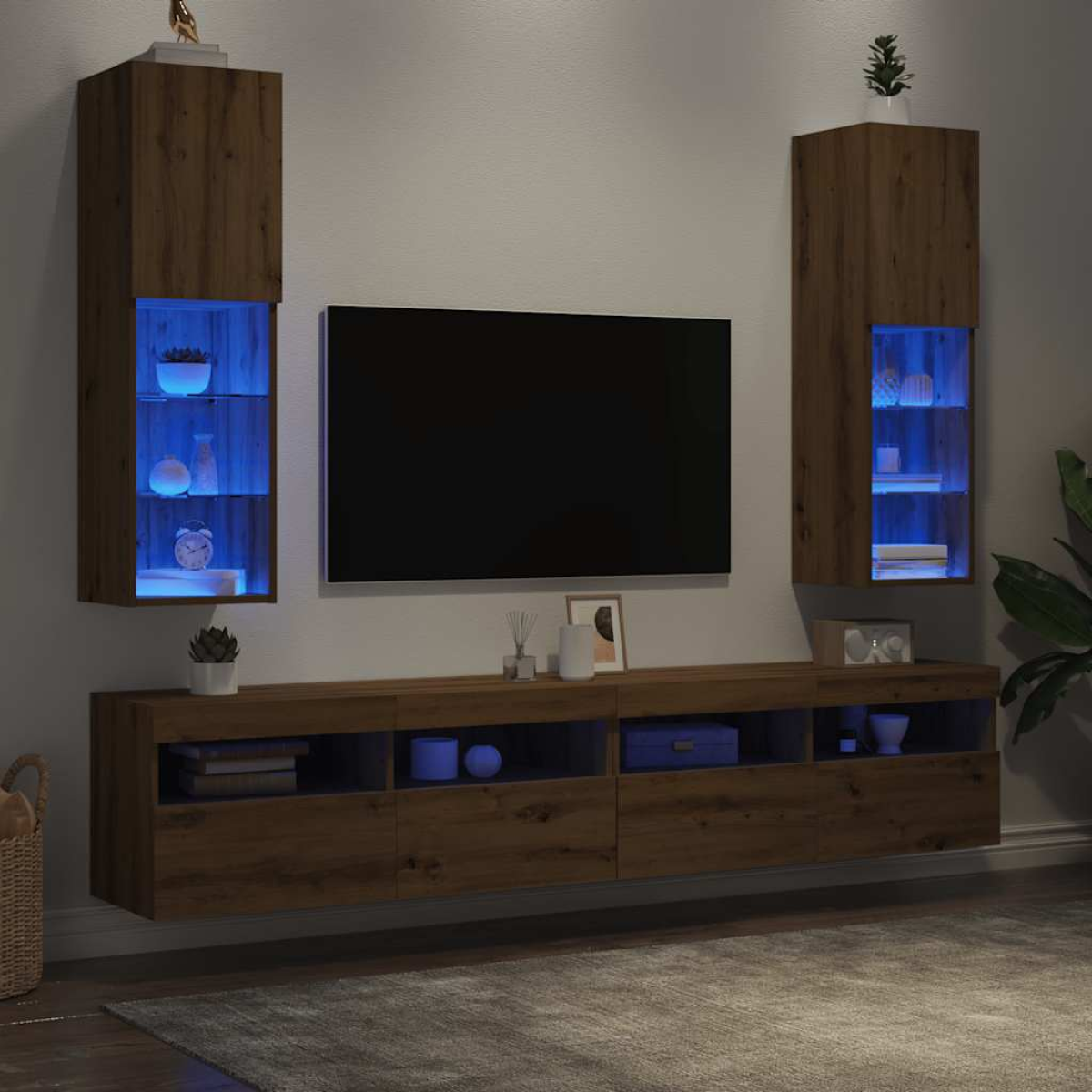 Featuring a trendy yet practical design, these TV cabinets with LED lights will become a focal point of your room. Durable material: The engineered wood is of exceptional quality with smooth surface and also features strength, stability and resistance to moisture. Made of engineered wood, these TV stands are sturdy and durable.Ample storage space: These TV units offer ample storage space for keeping your DVD players, receivers, disks, and other small items well organised and within reach.RGB LED lights: These entertainment centres feature RGB LED lights, which have different menus to change the colour of lights and let the colour adjust automatically.Wall-mounted design: These media cabinets can be wall-mounted to add extra storage space. That way, you can maximise your floor space and keep the area clean. Good to know:Screws and plugs for inside the wall are not included. We advise to find and use screws and plugs suitable specifically for your walls. If you're not sure, you can consult with a professional. Please read and follow each step of the instructions.The product has a USB connector that requires a certified 5V USB power source (not included).