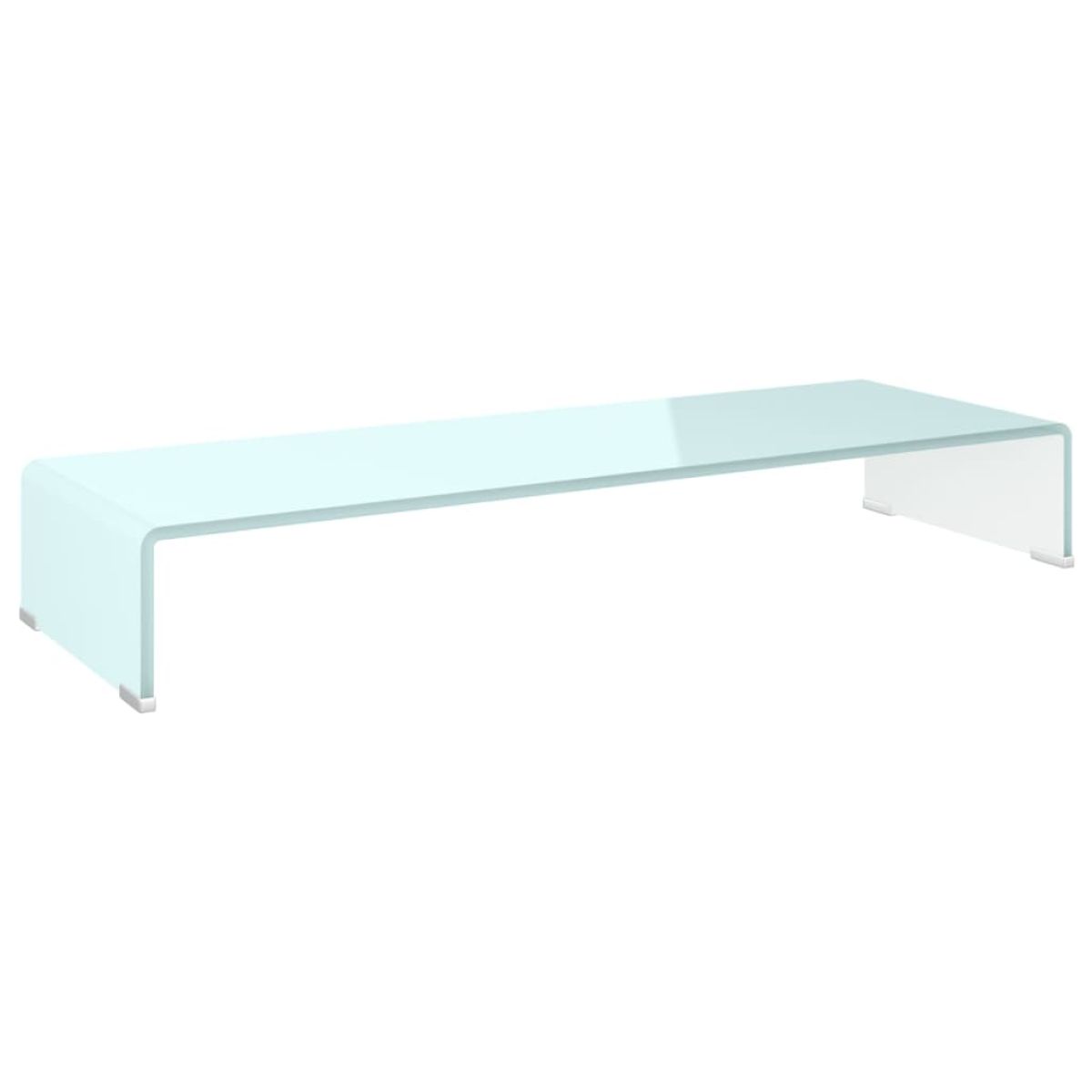 This practical TV stand has a tempered glass construction. The sleek, streamlined design of this understated TV unit will add a modern touch to your living space. This glass shelf can be used as a TV stand or riser for your desktop monitor, television, laptop and other multimedia devices. With the glass shelf raising the monitor, you will have a better view of the screen while sitting comfortably, which helps to reduce the strain and discomfort on your neck or back. The space underneath can accommodate your DVD player, game console, streaming device, receivers, and media carriers. The glass frame is tempered for added strength and safety. The smooth surface is easy to clean with only a damp cloth.