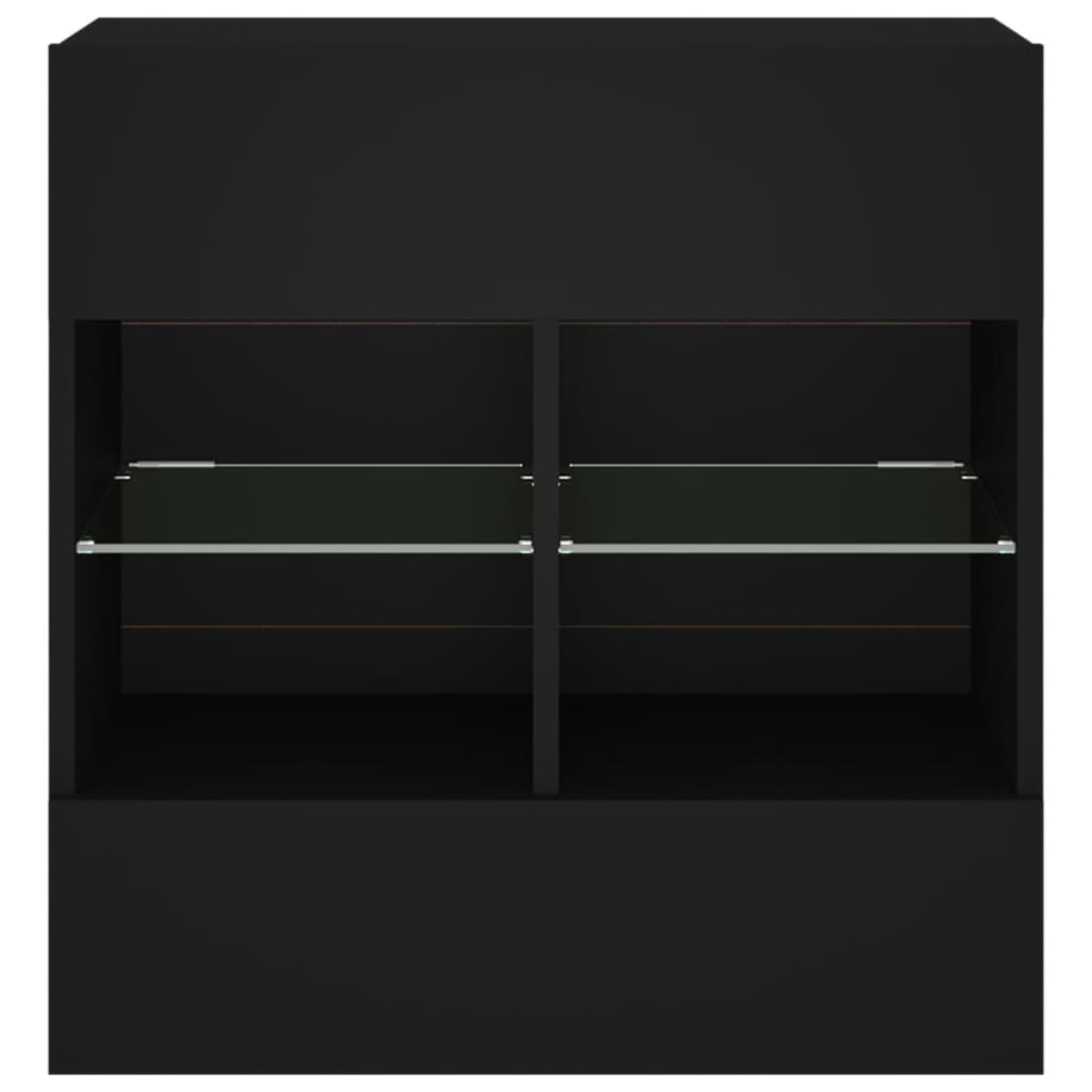 This TV wall cabinet is the perfect solution for your living space to maximise space and keep the floor areas uncluttered. Durable material: The engineered wood is of exceptional quality with a smooth surface and also features strength, stability and resistance to moisture.RGB LED lights: The wall media cabinet is equipped with vibrant RGB LED lights. With various customisable menus, you can effortlessly change the colour of the lights and even set them to adjust automatically. These LED lights not only enhance the contemporary look of the floating TV unit but also add to its trendy appeal.Ample storage space: The TV wall unit has 2 glass shelves and 4 compartments behind doors that offer ample space to keep your small items like books, DVDs, and magazines neatly organized and within reach.Versatile: The cabinet is multifunctional and can be used as a TV wall cabinet or a wall-mounted bedside cabinet. You can also combine it with other cabinets to create a stunning living wall.Wall-mounted design: This LED cabinet can be wall-mounted to add extra storage space. That way, you can maximise your floor space and keep the area clean. Good to know:Screws and plugs for inside the wall are not included. We advise to find and use screws and plugs suitable specifically for your walls. If you're not sure, you can consult with a professional. Please read and follow each step of the instructions.The product has a USB connector that requires a certified 5V USB power source (not included).