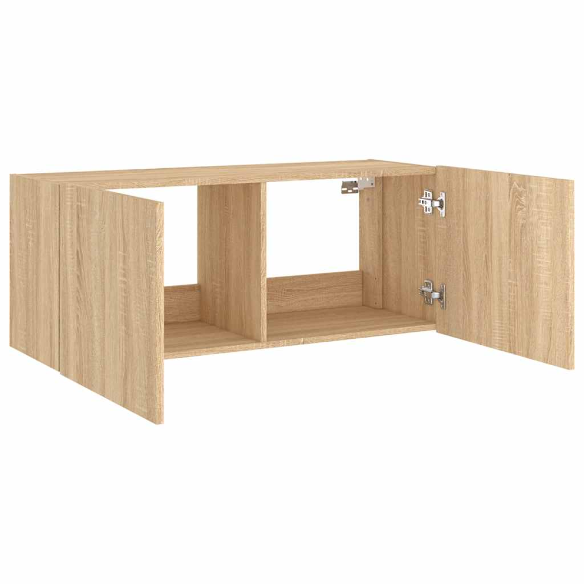 This TV wall cabinet is the perfect solution for your living space to maximise space and keep the floor areas uncluttered. Durable material: The engineered wood is of exceptional quality with a smooth surface and also features strength, stability and resistance to moisture.RGB LED lights: The wall media cabinet is equipped with vibrant RGB LED lights. With various customisable menus, you can effortlessly change the colour of the lights and even set them to adjust automatically. These LED lights not only enhance the contemporary look of the floating TV unit but also add to its trendy appeal.Ample storage space: The TV wall unit has 2 compartments behind the doors that offer ample space to keep your small items like books, DVDs, and magazines neatly organized and within reach.Wall-mounted design: This LED cabinet can be wall-mounted to add extra storage space. That way, you can maximise your floor space and keep the area clean. Good to know:Screws and plugs for inside the wall are not included. We advise to find and use screws and plugs suitable specifically for your walls. If you're not sure, you can consult with a professional. Please read and follow each step of the instructions.The product has a USB connector that requires a certified 5V USB power source (not included).