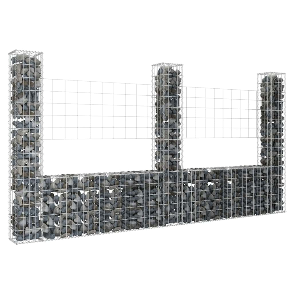 vidaXL U-shape Gabion Basket with 3 Posts Iron 260x20x150 cm