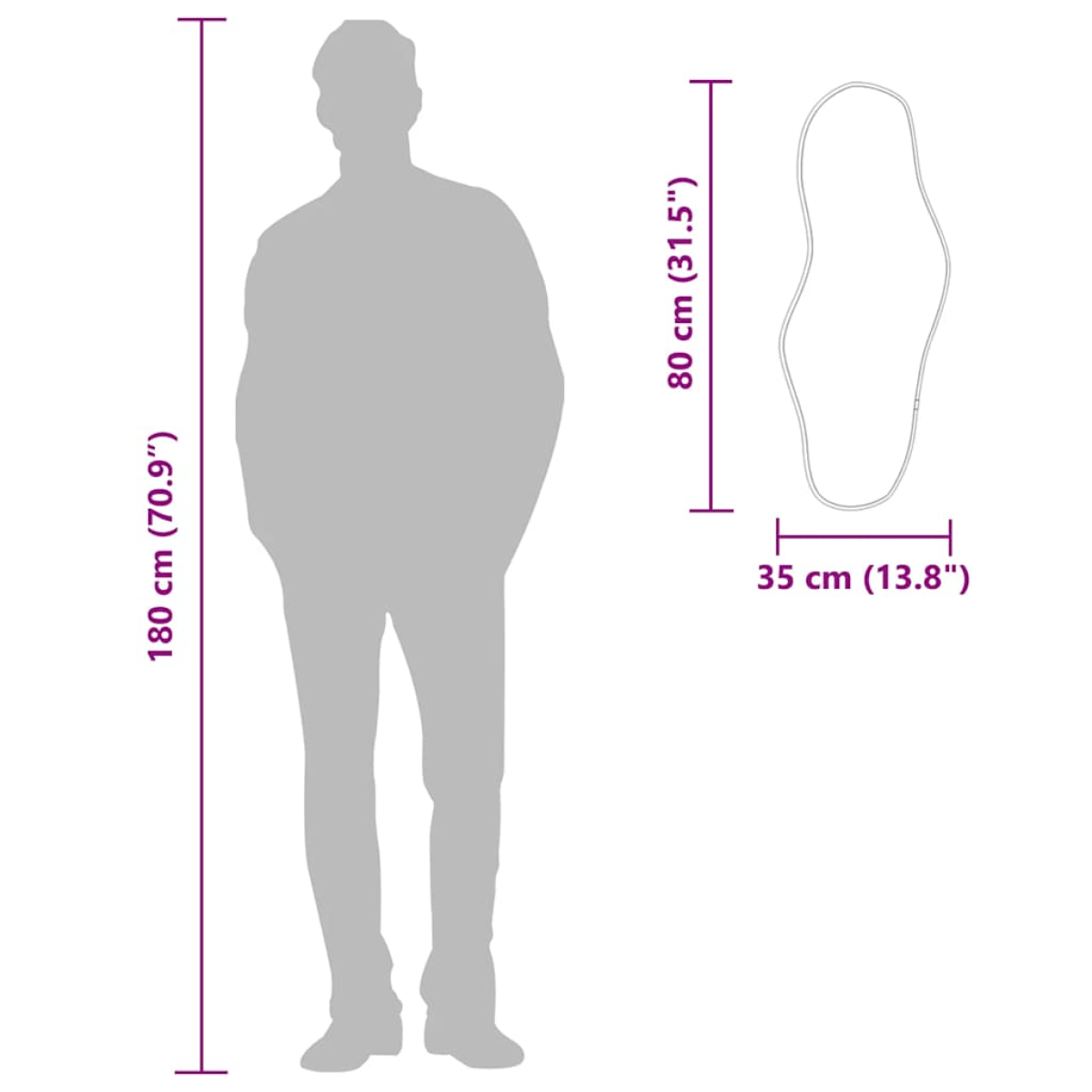 Add a touch of minimalistic aesthetic to your home decor with this practical wall mirror! Durable material: This vanity mirror is made of glass with a PVC frame which ensures stability and durability.Wall-mounted design: The cosmetic mirror can be wall-mounted, which makes it especially suitable for rooms with limited space.Clear image: The glass mirror face provides a clear image. So, you can enjoy a beautiful and natural reflection when standing in front of it.Wide applications: You can use the wall-mounted mirror to decorate your bedroom, wardrobe, hallway, living room, bathroom, and any other place you need to add brilliance.